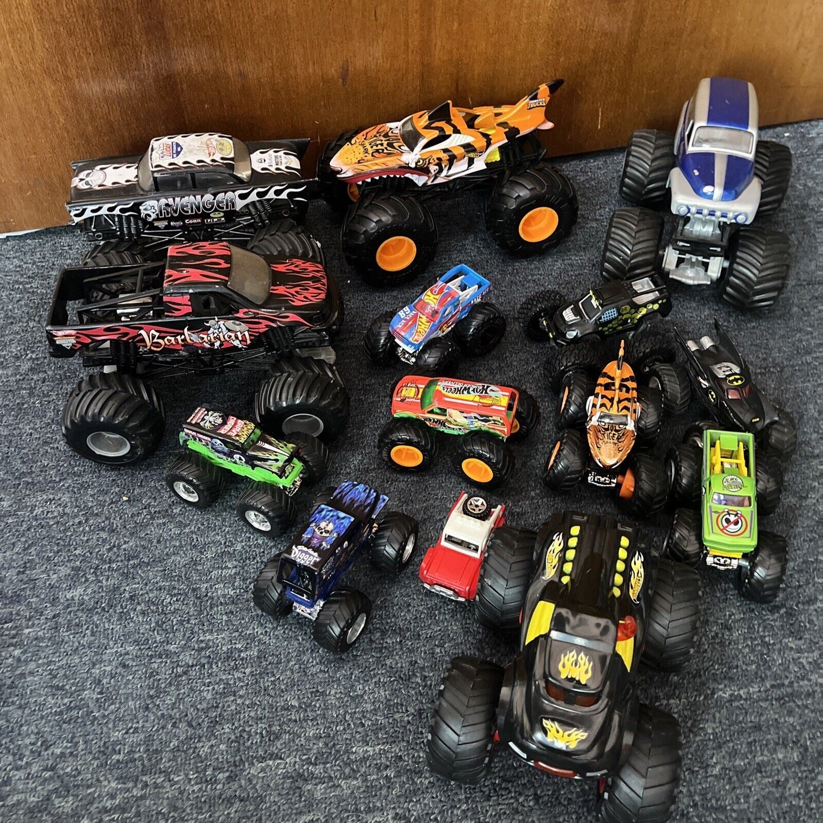 12x Monster Truck Hot Wheels & 1x Car Barbarian Grave Digger Avenger.