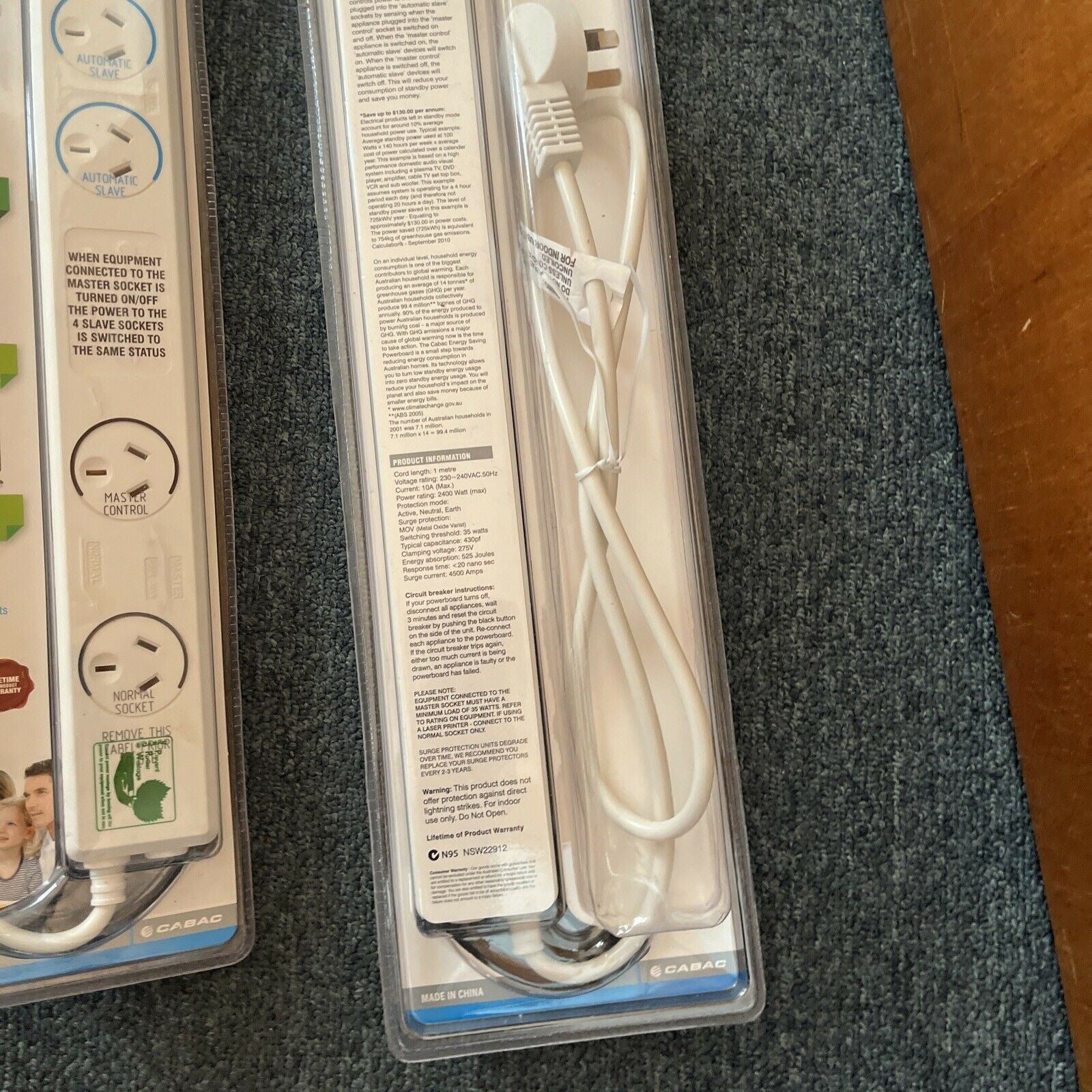 2x Cabac Powerboard SP Green Energy Saving 6 Way Surge Overload Protection.