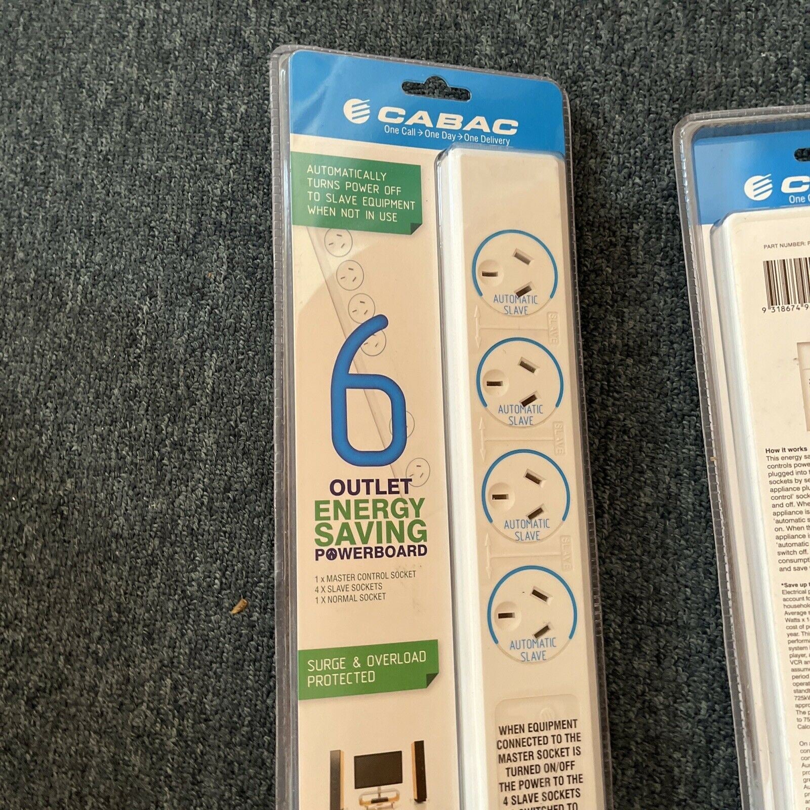 2x Cabac Powerboard SP Green Energy Saving 6 Way Surge Overload Protection *New*