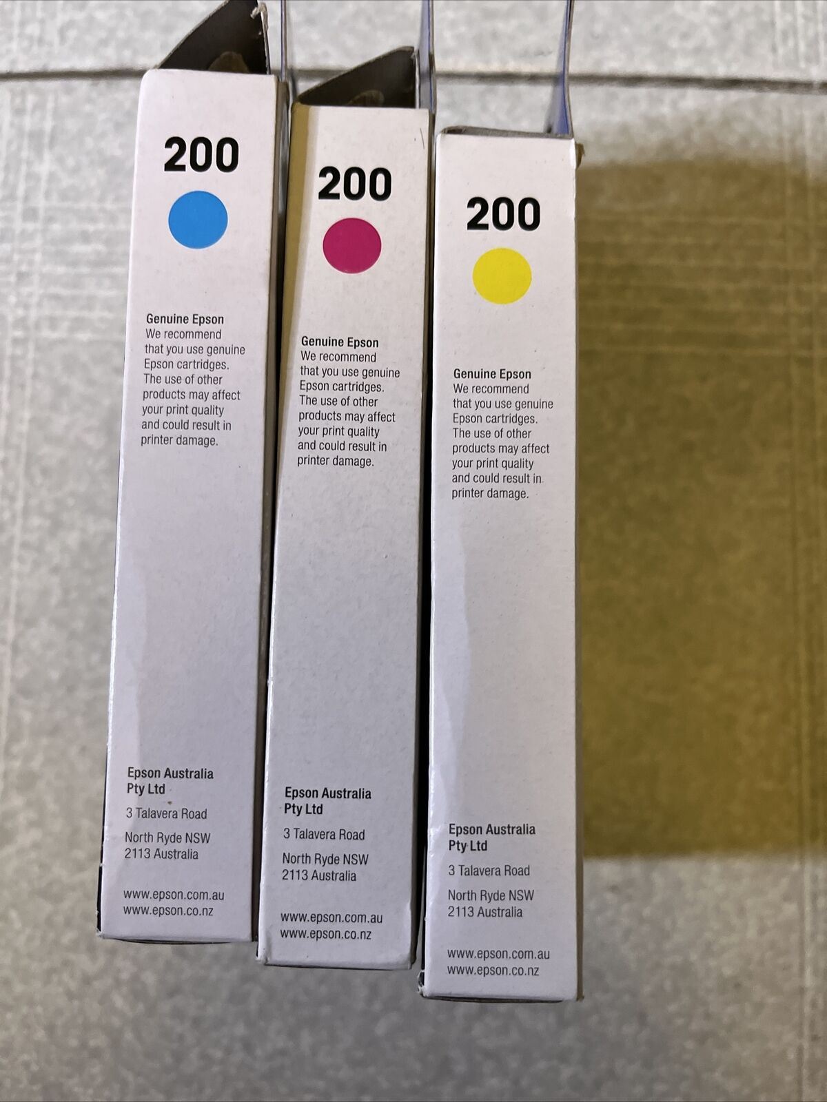 3x GENUINE Epson 200 Standard Ink Cartridge - Magenta, Yellow, Cyan