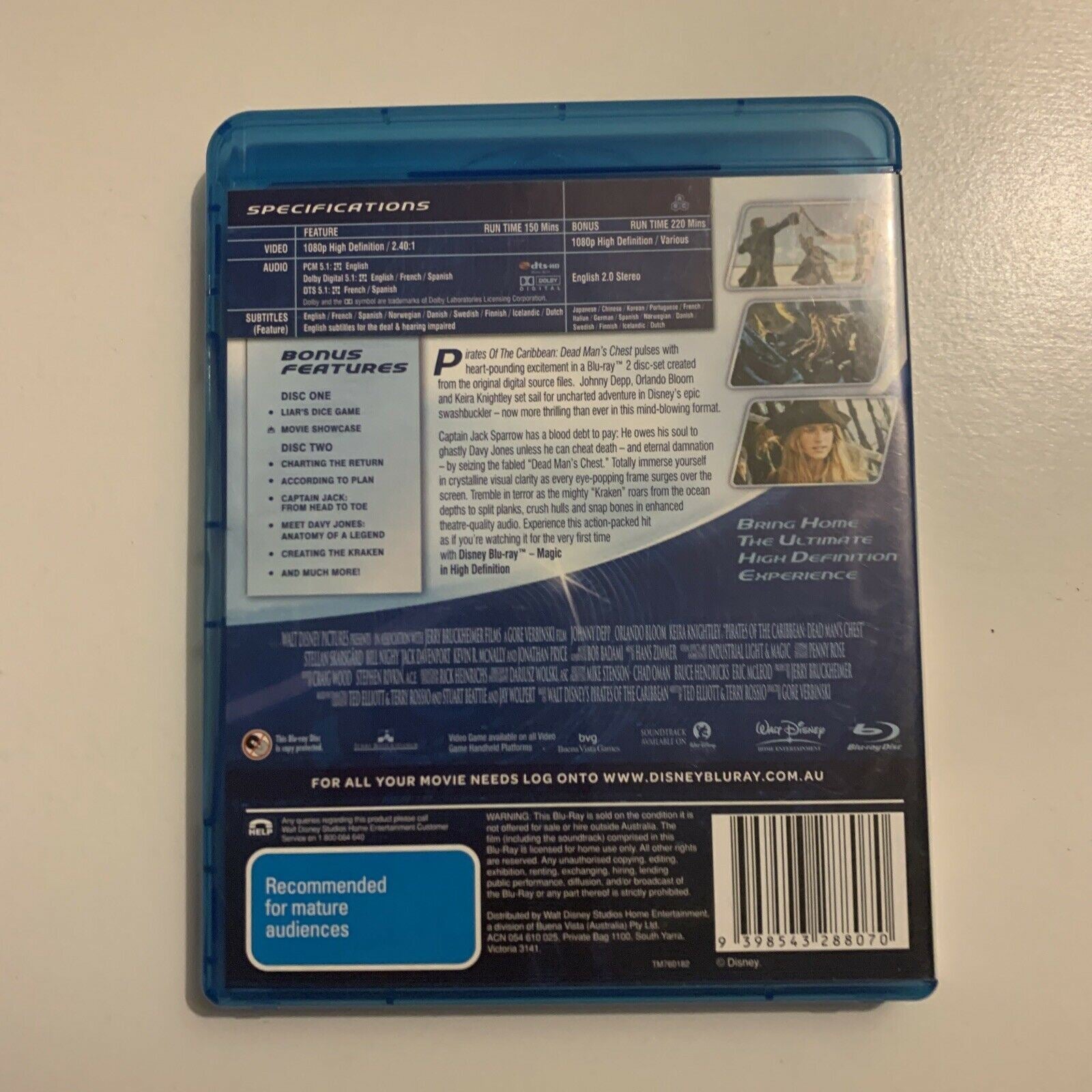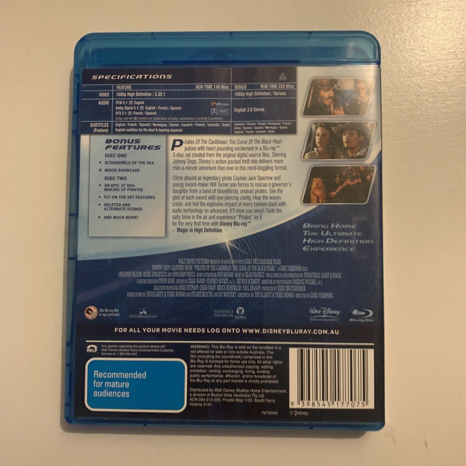 Pirates Of The Caribbean - The Curse Of The Black Pearl (Bluray, 2003, 2-Disc).