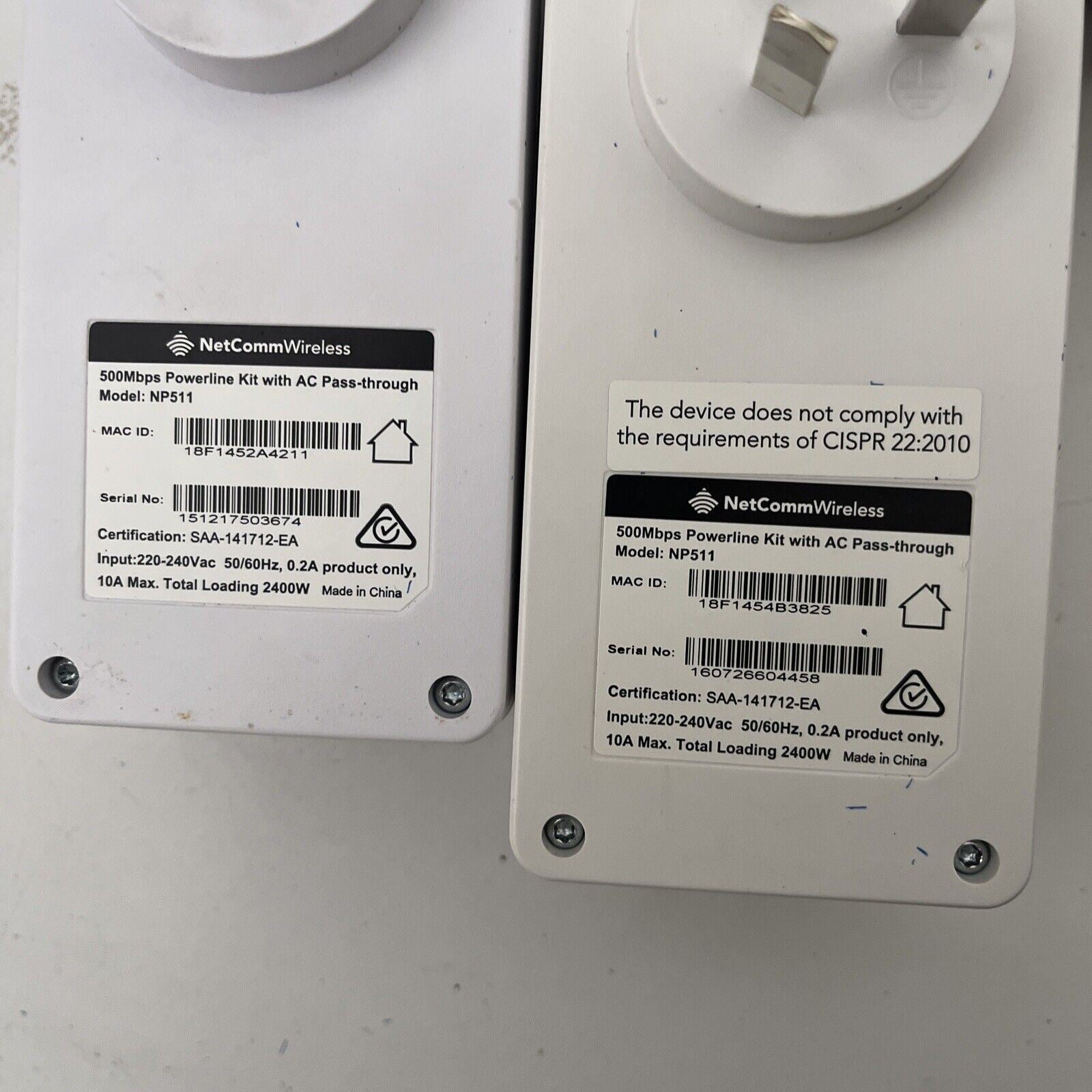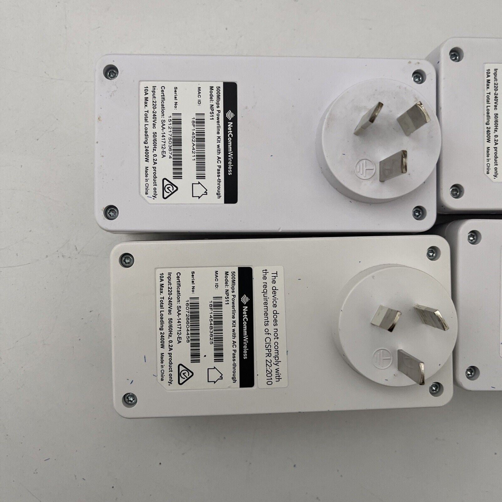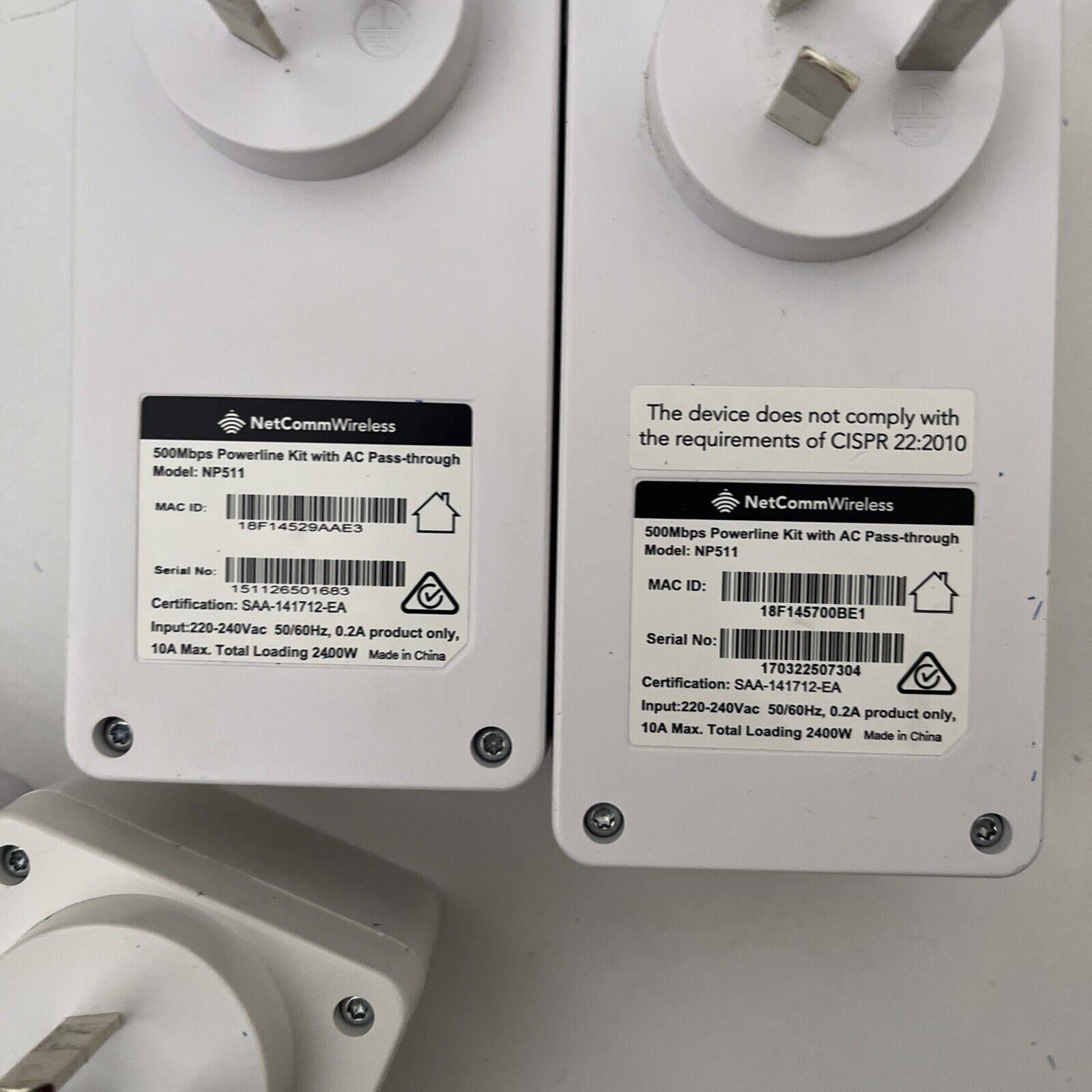 4x NetComm NP511 500Mbps Powerline Kit. Used