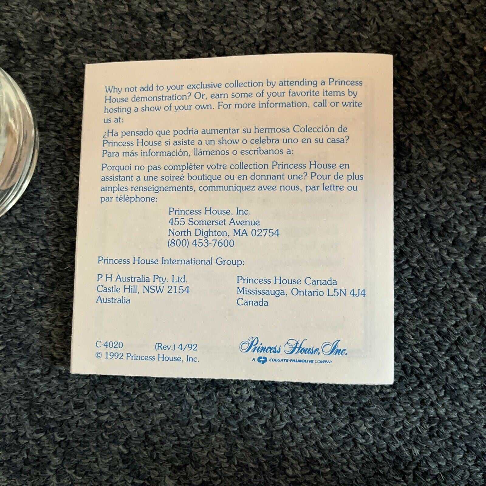 4x Princess House Heritage BeverageWare - Made In USA 1992.