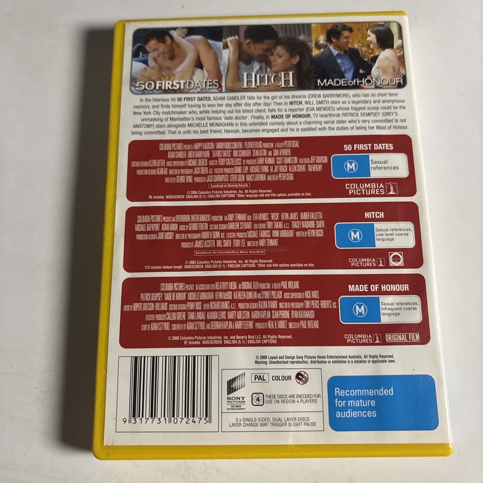 50 First Dates / Hitch / Made of Honour (DVD, 3-Disc) Adam Sandler Region 4