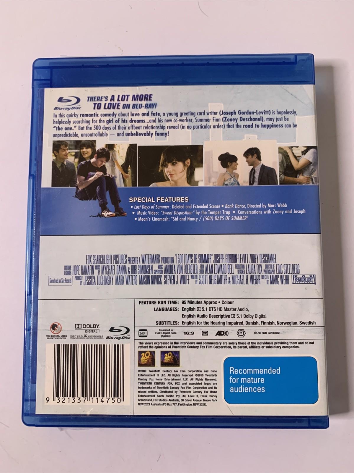 500 Days Of Summer (Blu-ray, 2009) Joseph Gordon-Levitt, Zooey Deschanel RegionB