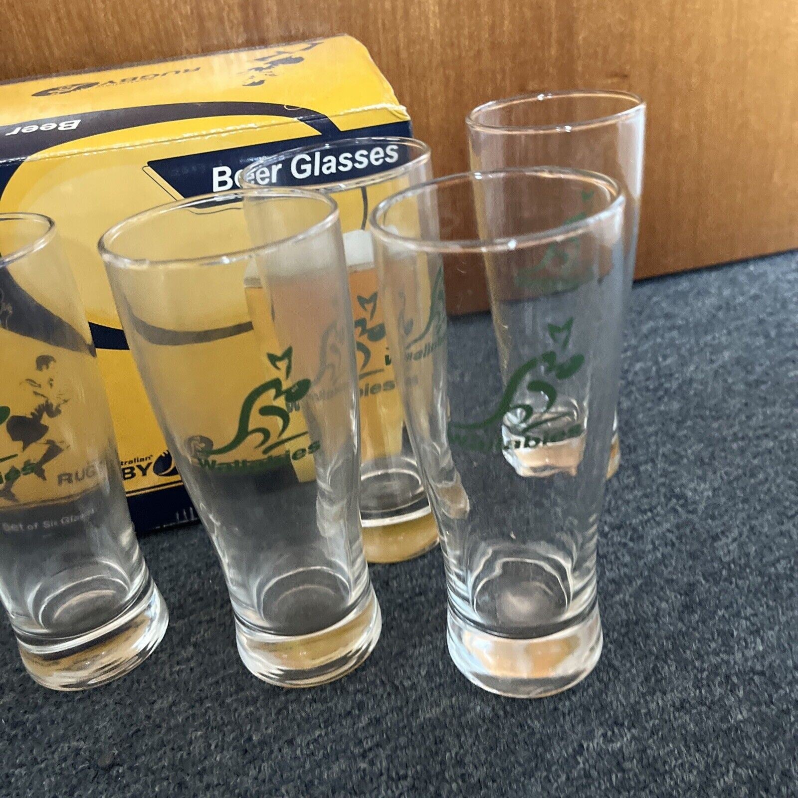6x Australian Rugby Wallabies Beer Glasses.