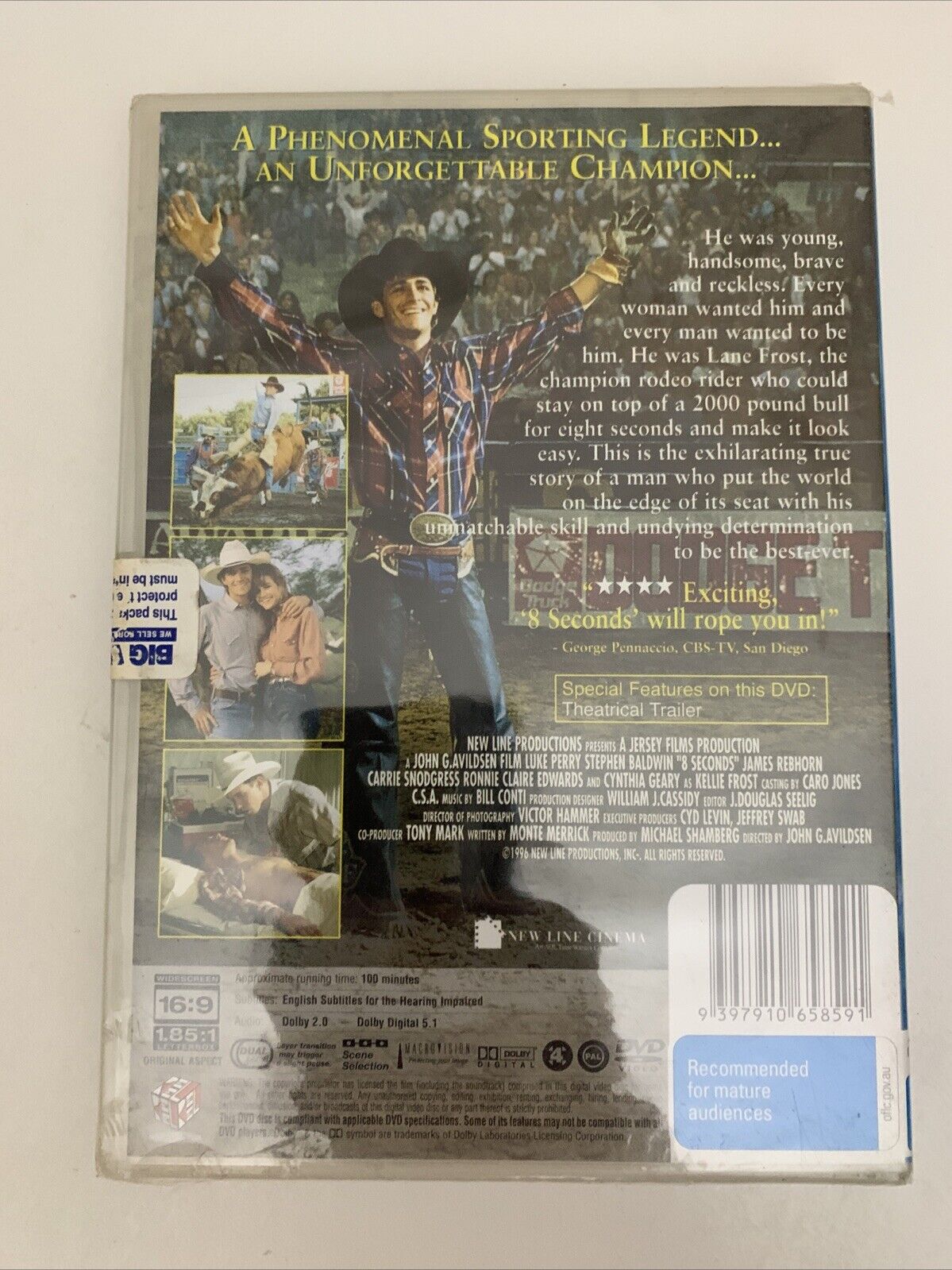 8 Seconds (DVD, 1993) Luke Perry, Stephen Baldwin Region 4 NEW Sealed