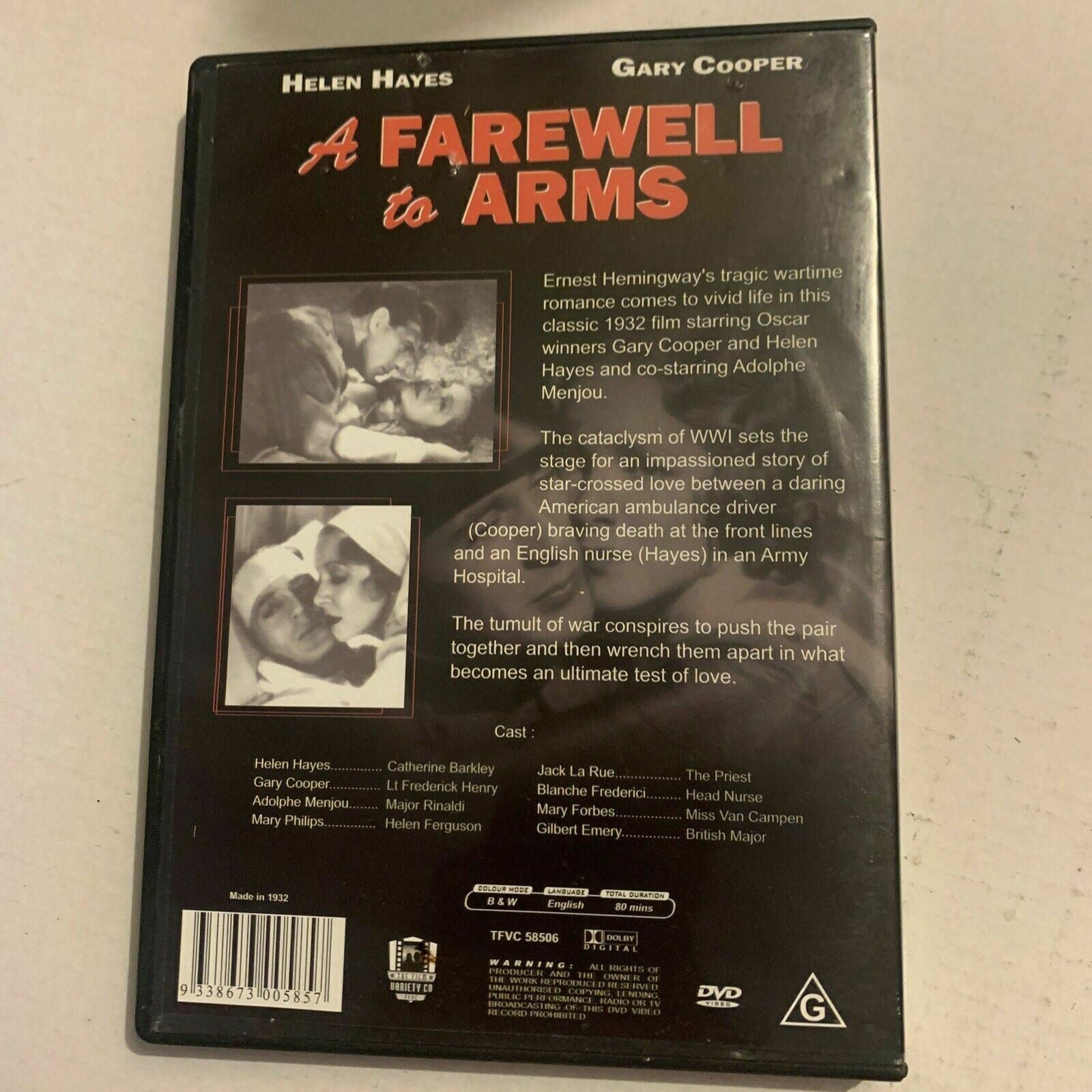 A Farewell To Arms (DVD, 1932) Helen Hayes, Gary Cooper. Condition is "Very good". Sent with Australia Post Standard Parcel.