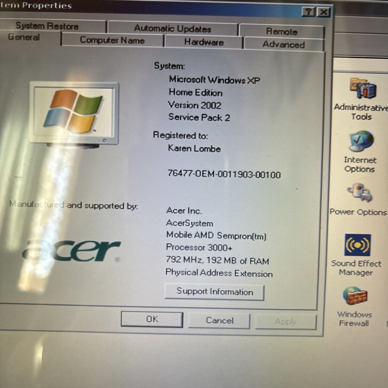 Acer Aspire 3000 Notebook AMD 3000+ 192MB RAM 18GB HDD DVD Drive *No Batteries*
