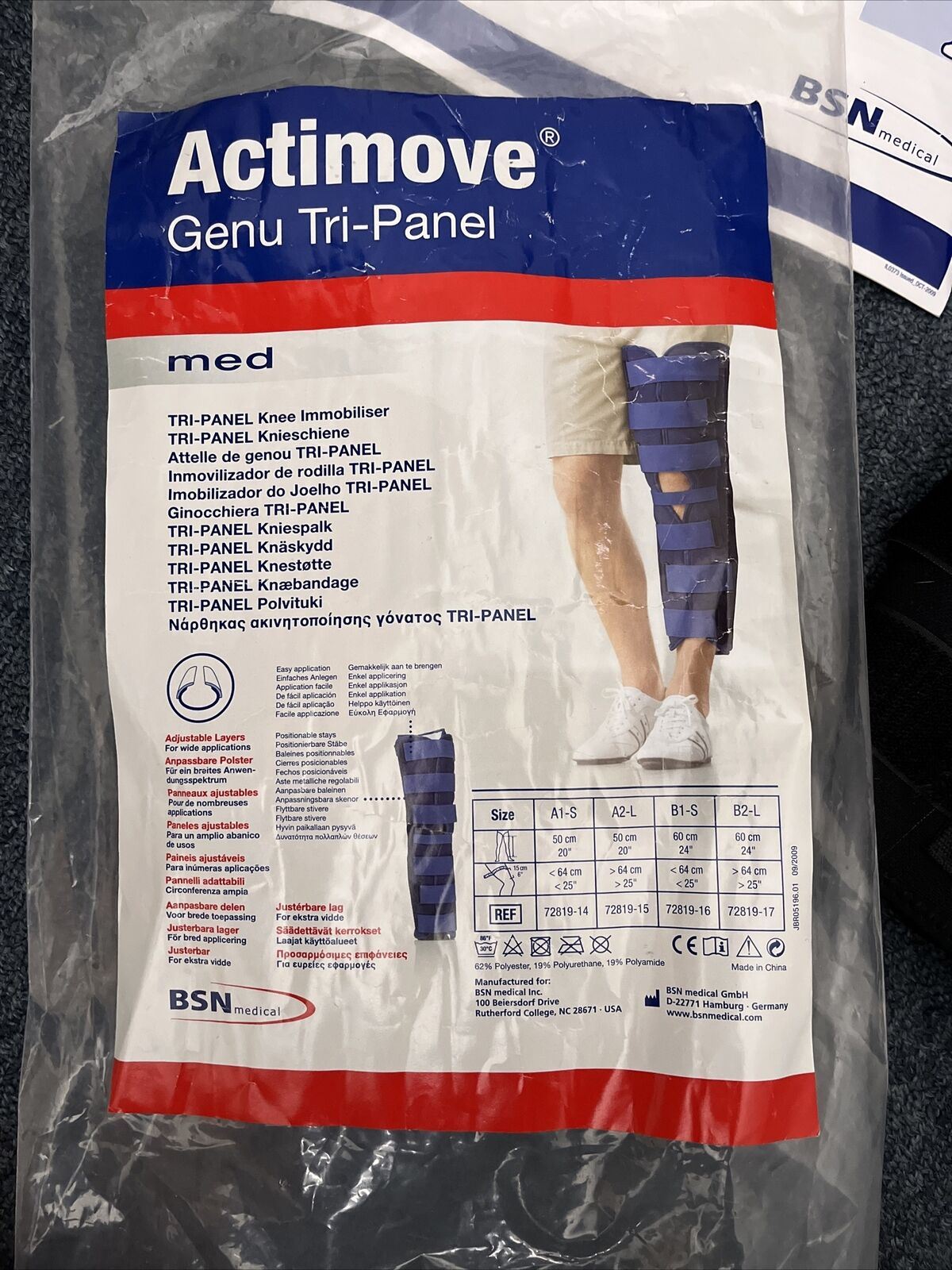 Actimove Genu Tri- Panel Knee Immobiliser 72819-14 Cleaned & Sterilised