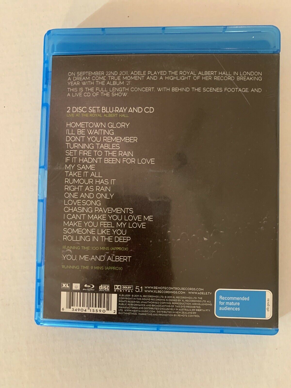 Adele - Live at the Royal Albert Hall (Bluray & CD, Nov-2011). Condition is Good. Sent with Australia Post Standard.