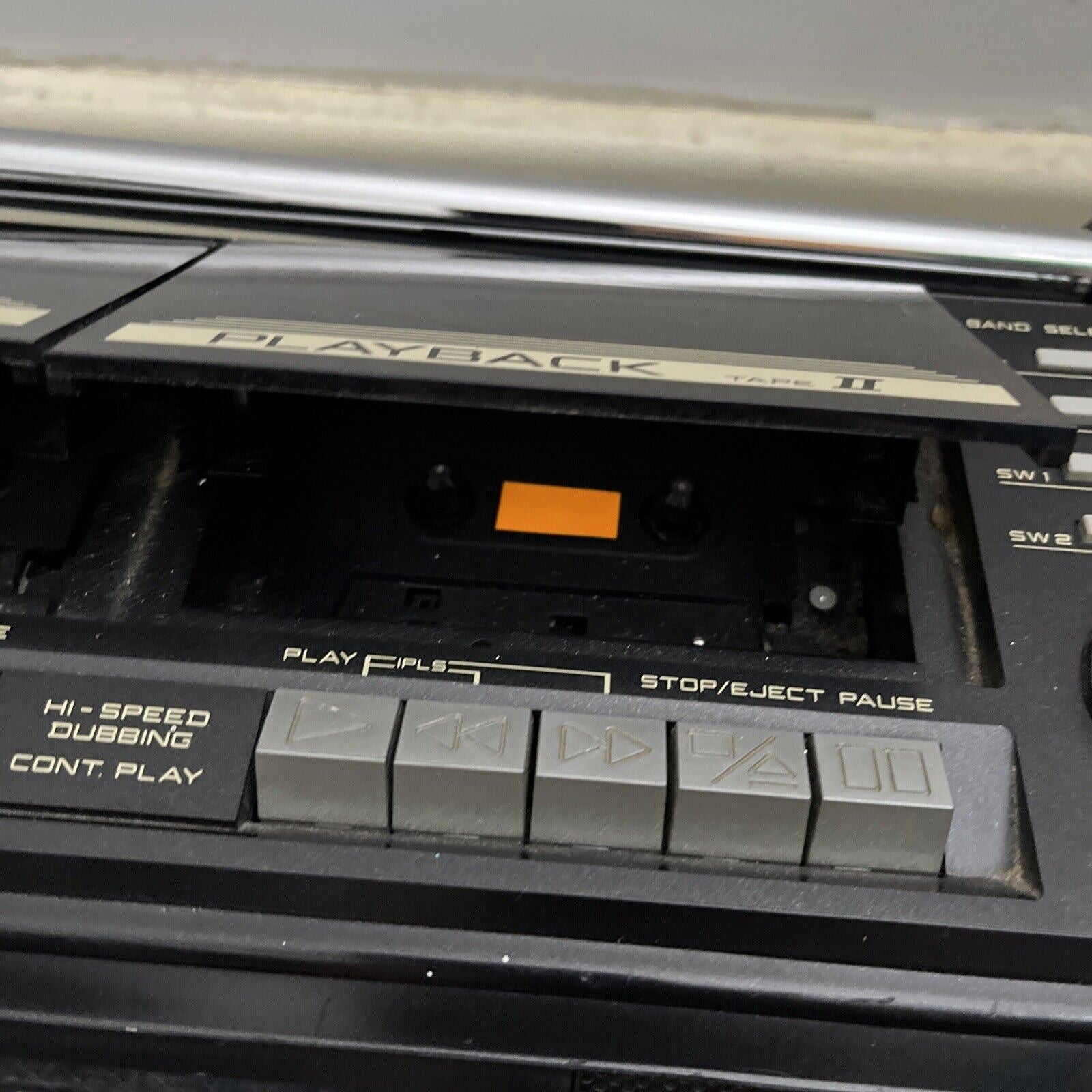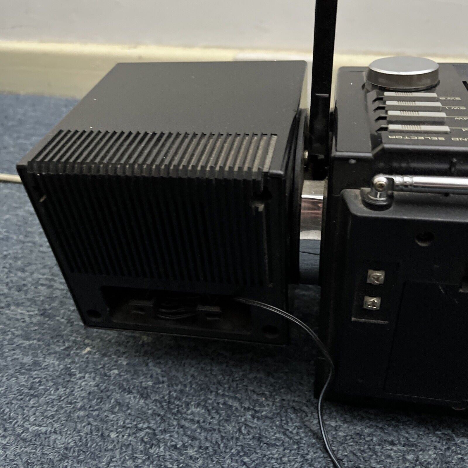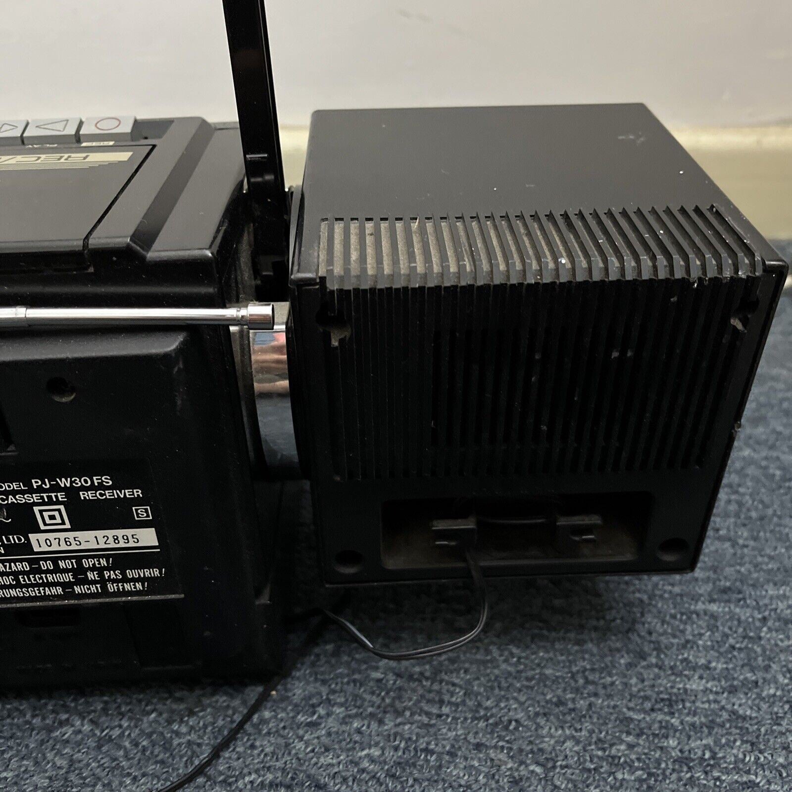 Cassette player not working (possible rubber band needs replacement) and right speaker not working. Radio is working with no issues. Speakers are detachable.