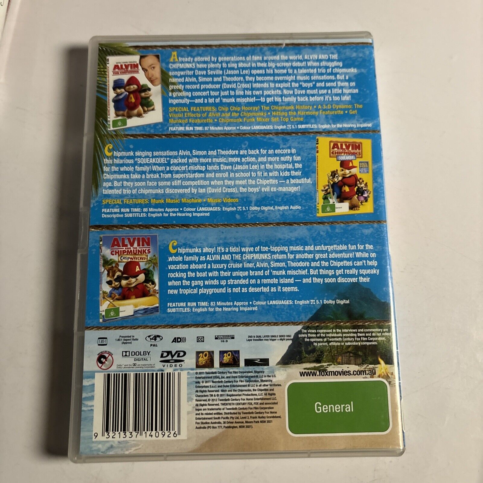Alvin And The Chipmunks 1, 2, 3 Triple Pack (DVD, 3-Disc) Region 4