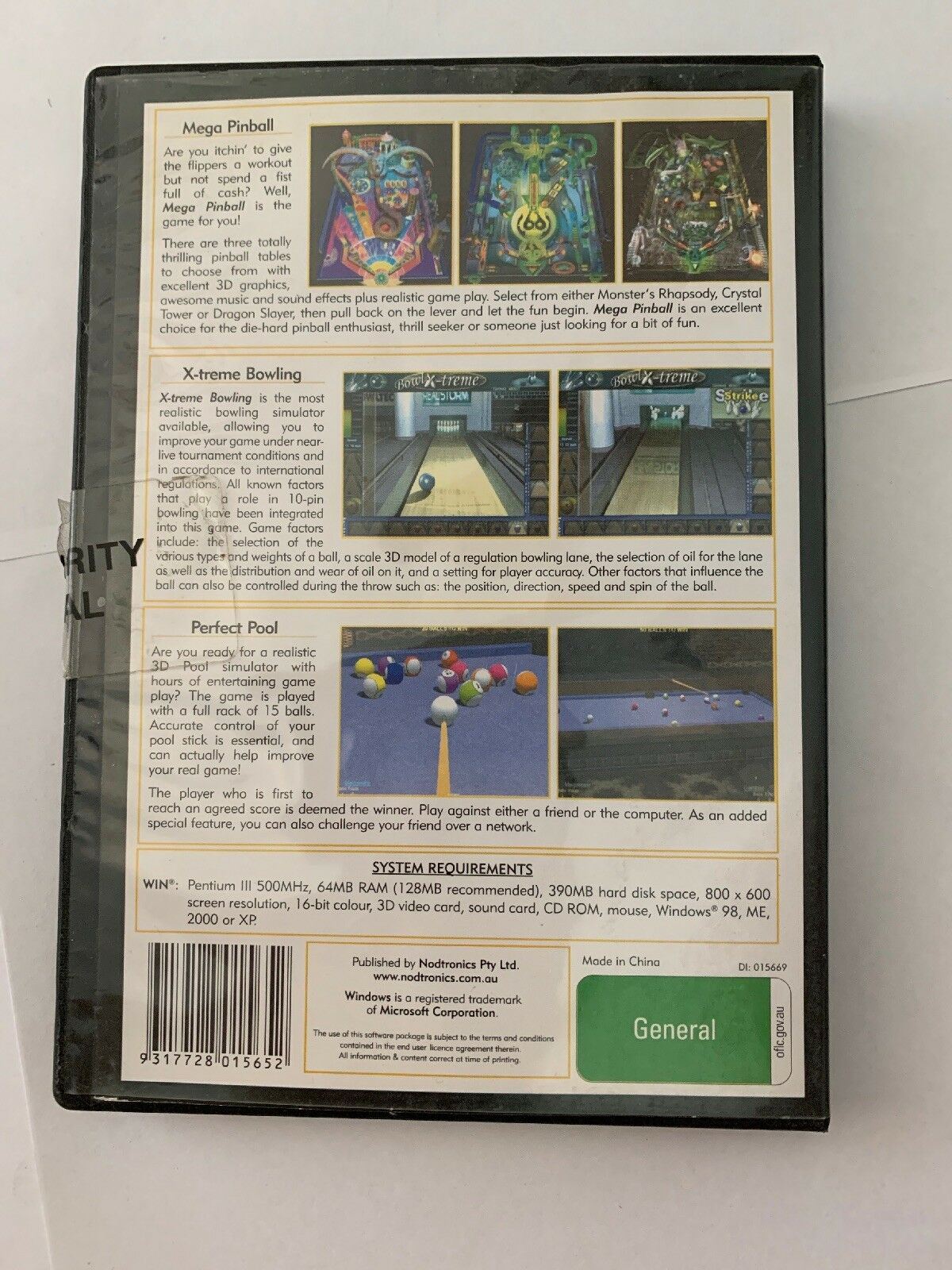 Genres include: x-treme bowling, pinball- 3 pinball machine, perfect pool