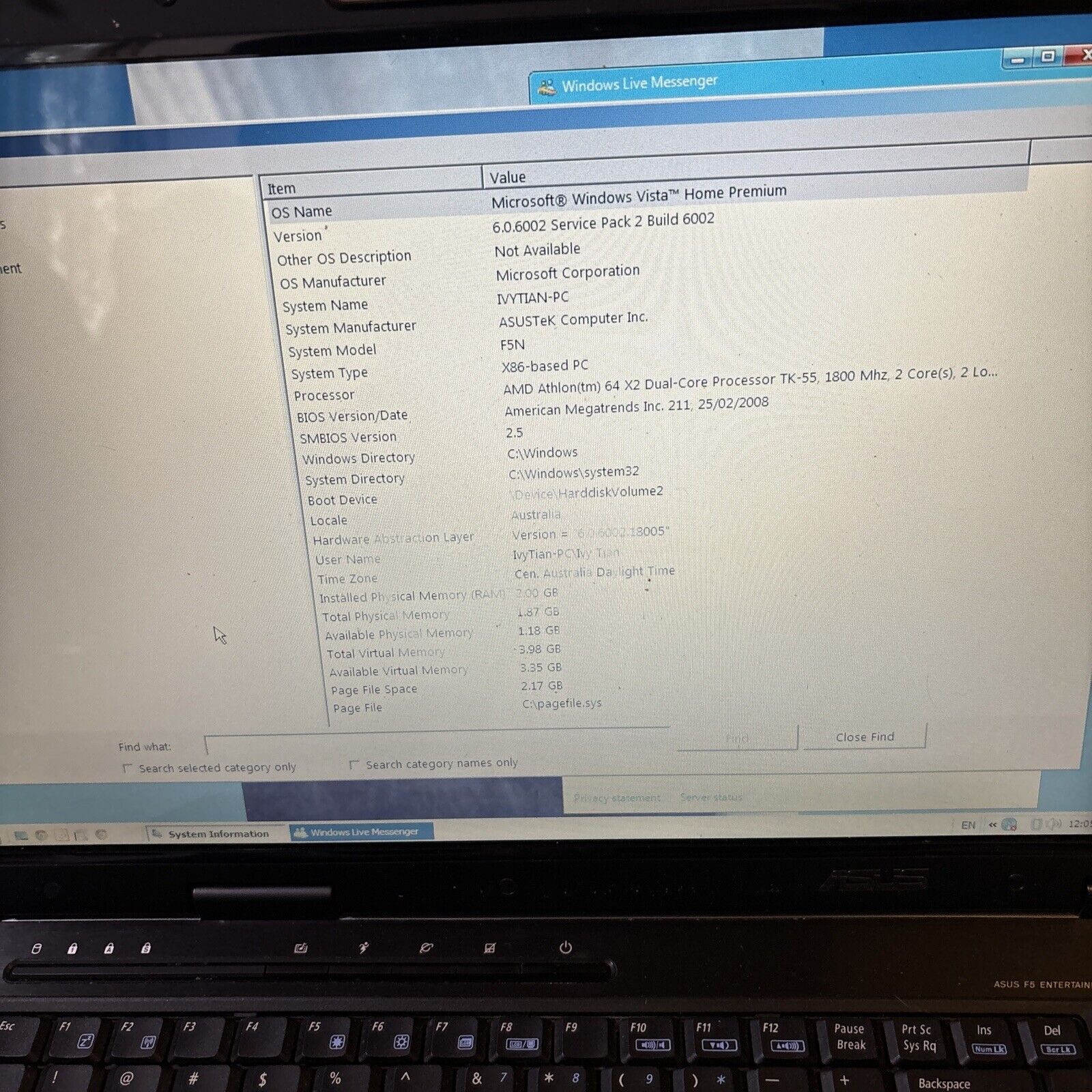 Asus 15.6" F5 PRO50N Laptop 2GB RAM 60GB HDD *For Parts Or Repair*