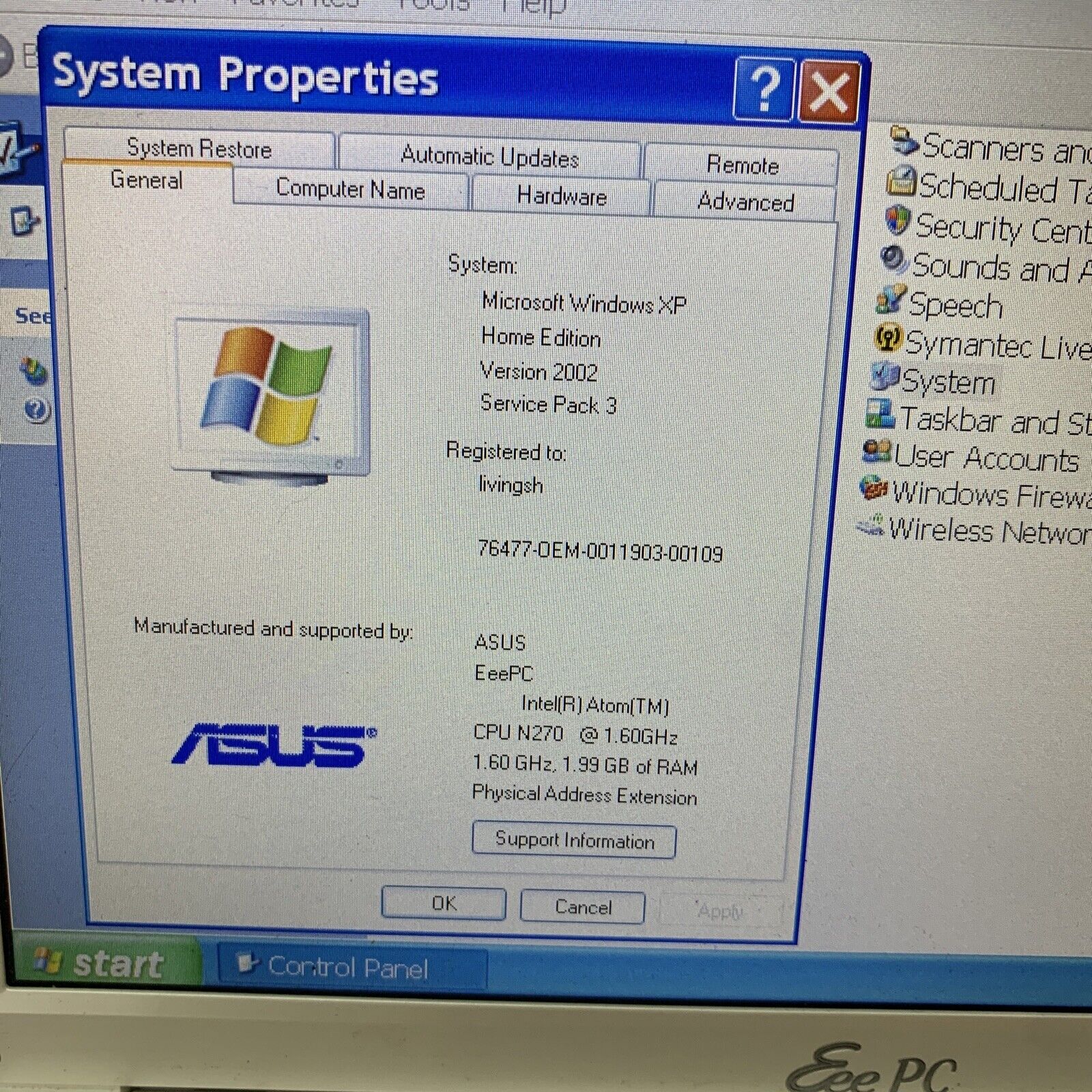 ASUS EEE PC 900A Laptop Intel Atom 1.6Ghz 2Gb RAM 16GB Windows XP