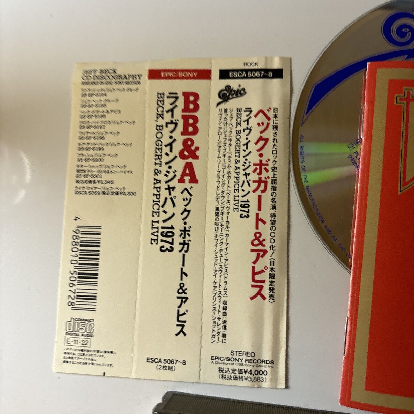 Beck Bogert & Appice Live (CD, 1974) Obi Japan Esca-5067-8