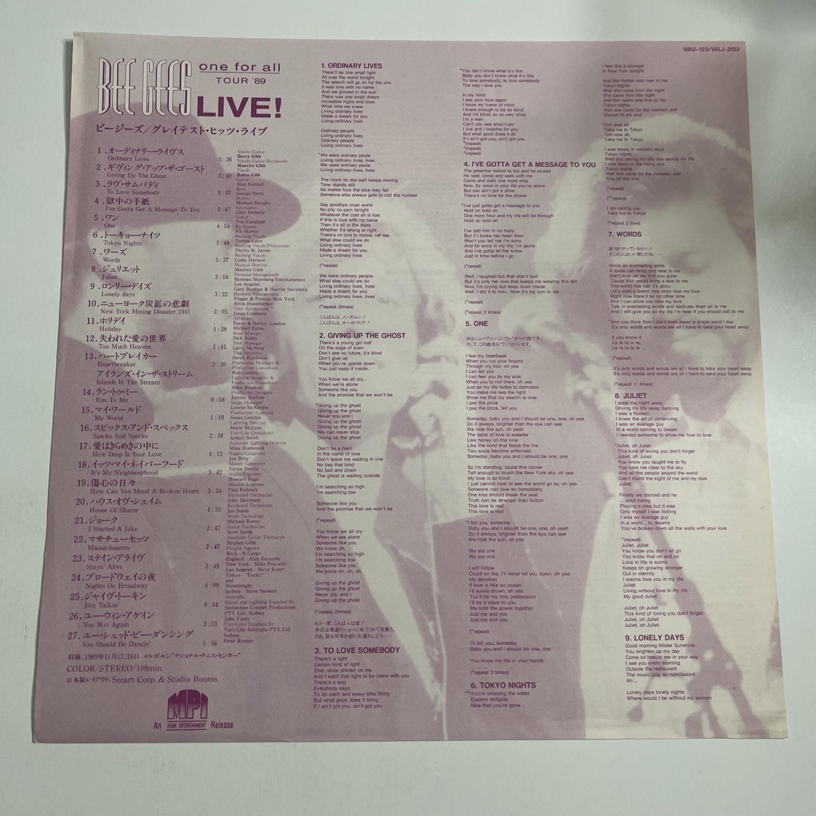 Bee Gees – One For All Tour Live! (Laserdisc LD, 1990) Japan NTSC VALJ-3123