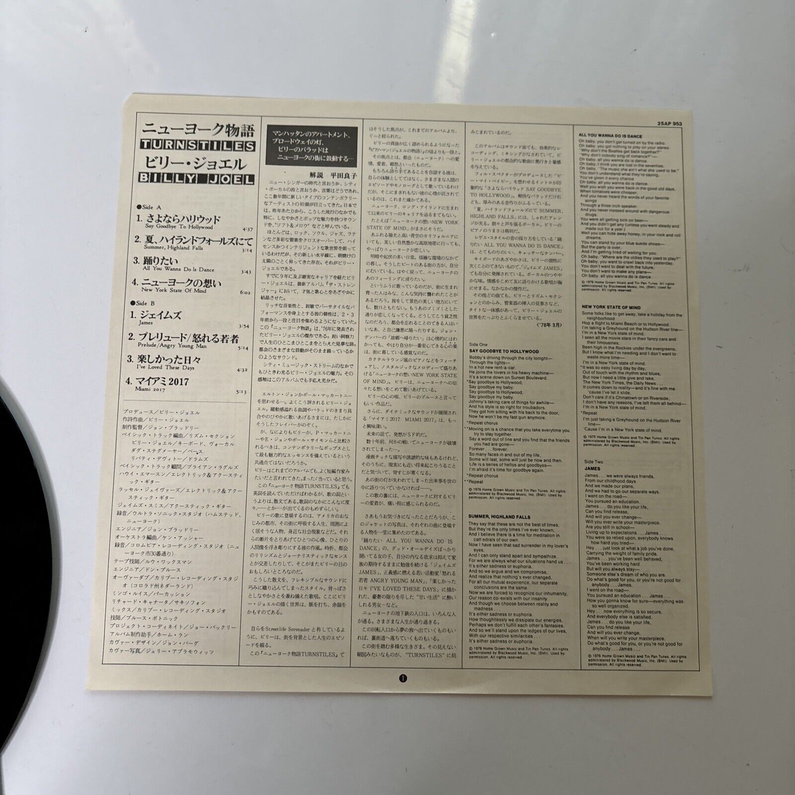 Billy Joel - Turnstiles Vinyl LP 1976 Japan 25AP-953