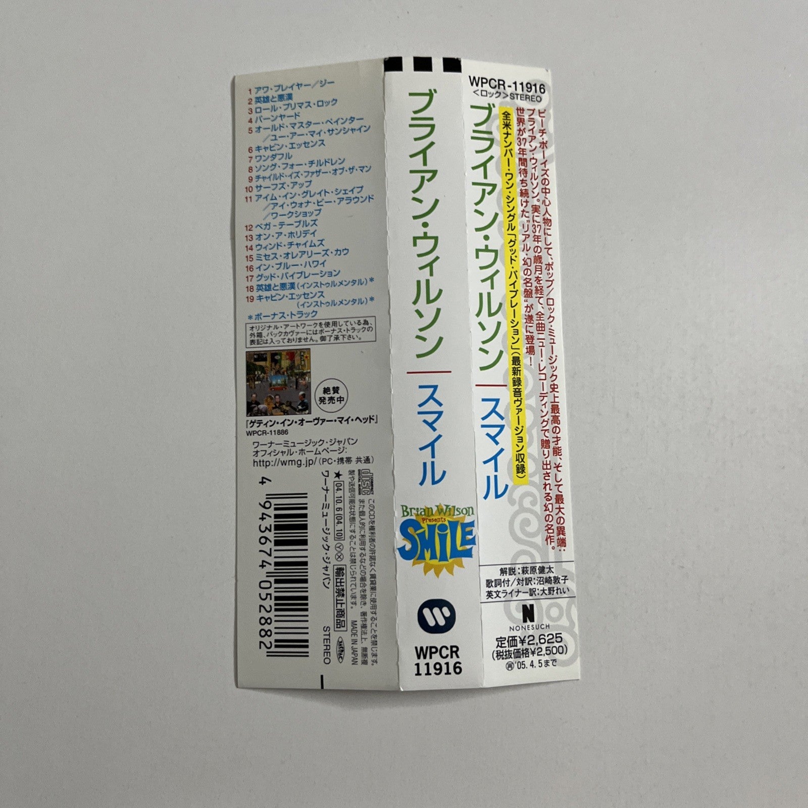 Brian Wilson – Smile (CD, 2004) Japan Obi, Booklet WPCR-11916