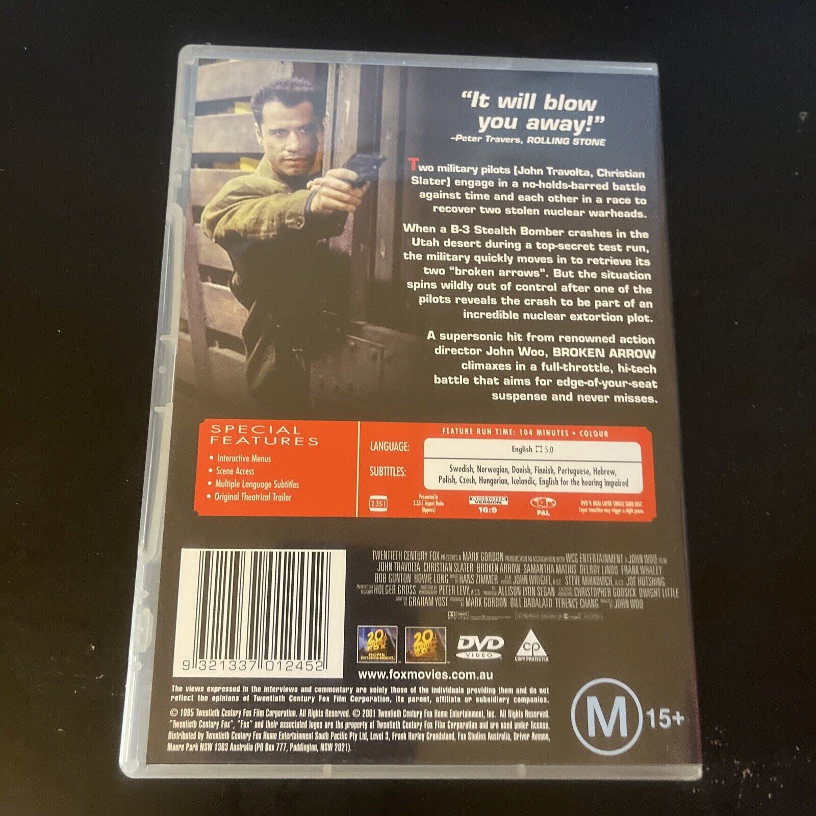 Broken Arrow (DVD, 1995) Region 4.