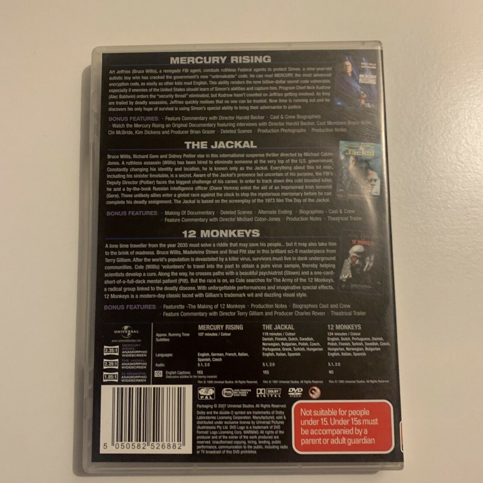 Bruce Willis: Mercury Rising / The Jackal / 12 Monkeys (DVD) Region 4&2