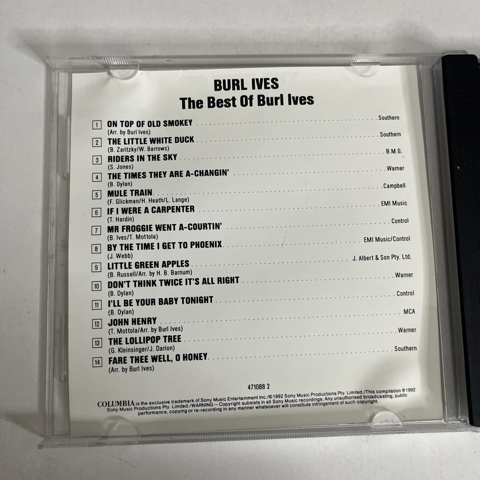 Burl Ives – The Best Of Burl Ives (CD, 1992) Australia 471088 2