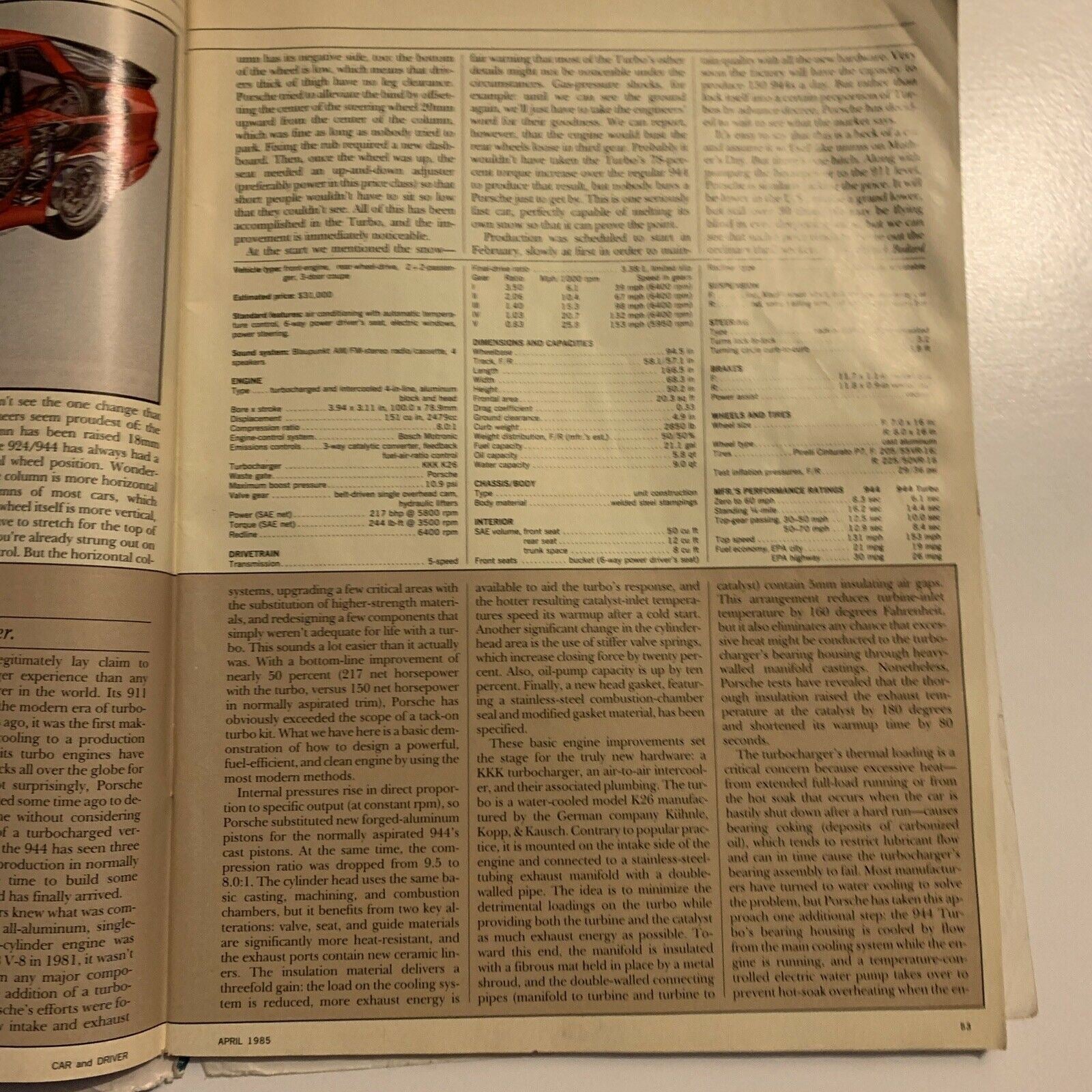 Car And Driver Magazine - April 1985 - Porsche 944 Turbo