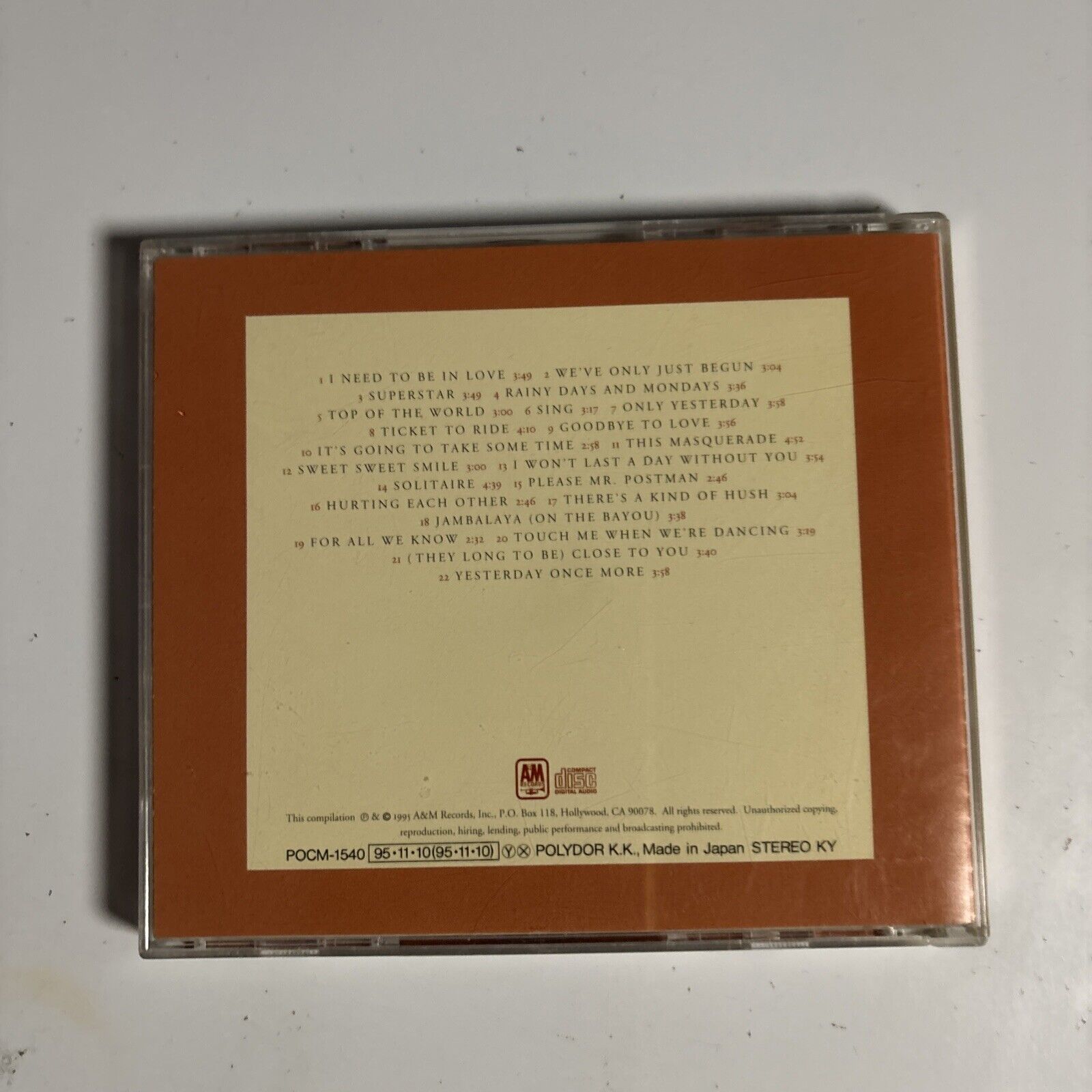 Carpenters – Twenty-Two Hits Of The Carpenters (CD, 1995) pocm-1540 Japan