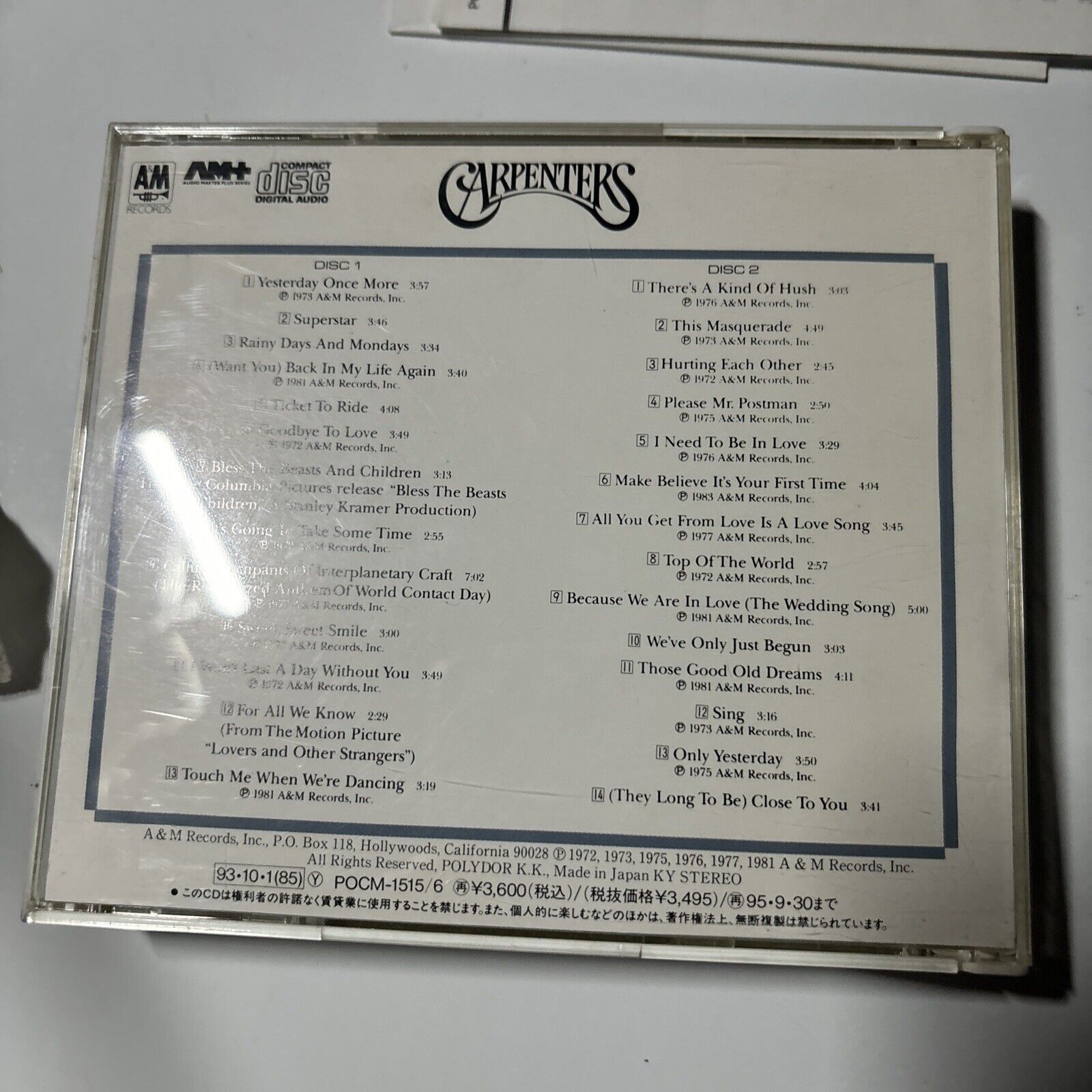 Carpenters - Yesterday Once More (CD, 1993, 2-Disc) Japan pocm-1515/6