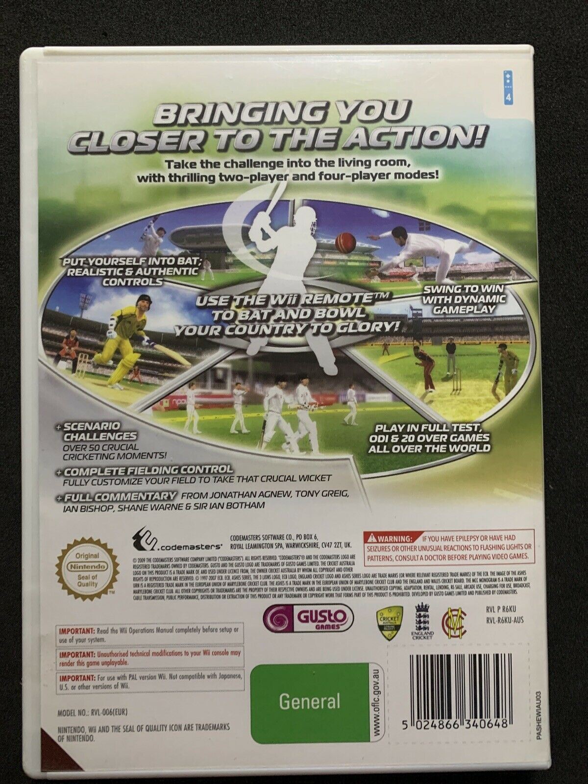 Cricket - Nintendo Wii PAL (Wii-U Compatible). Condition is Very good. Sent with Australia Post Standard Small Box/Satchel.