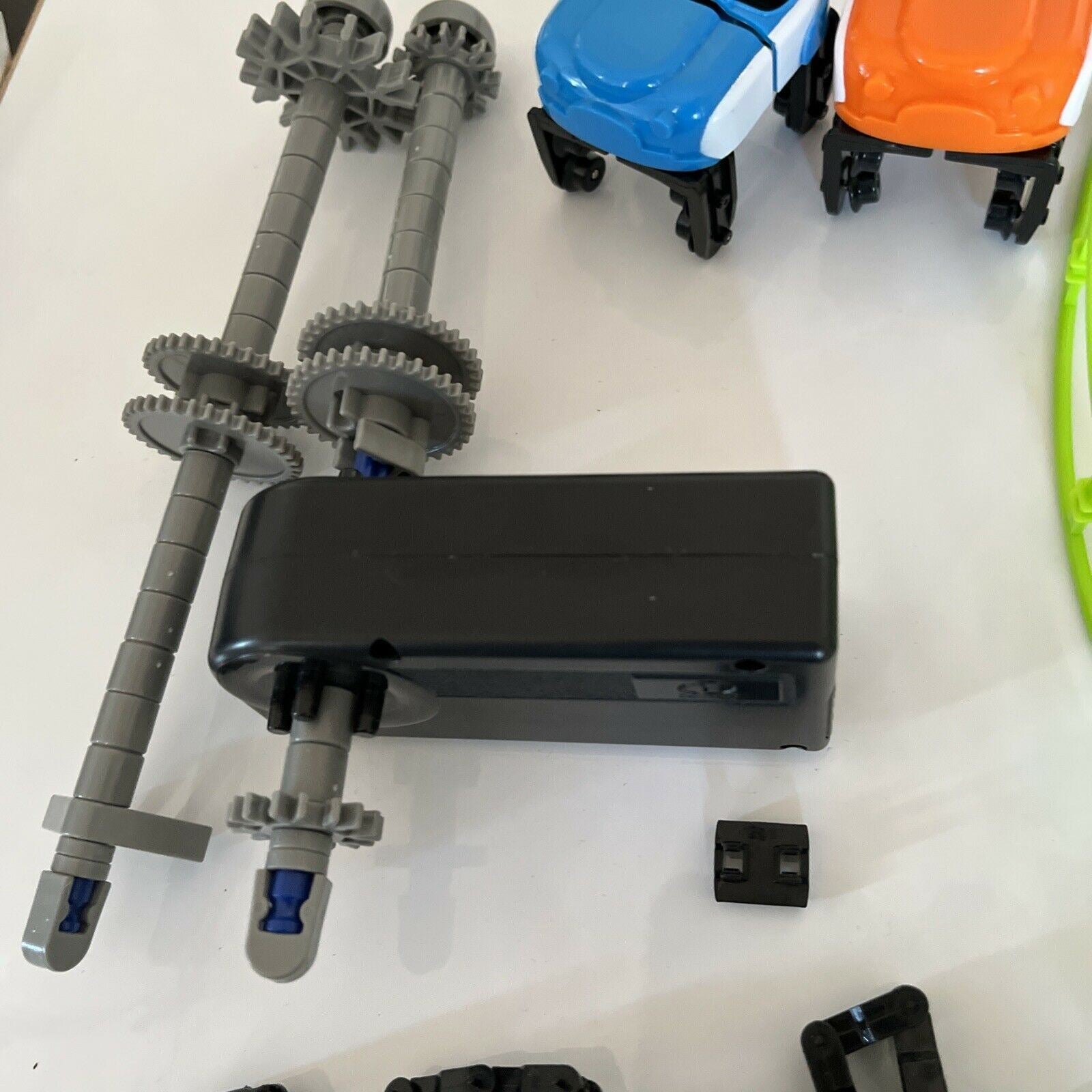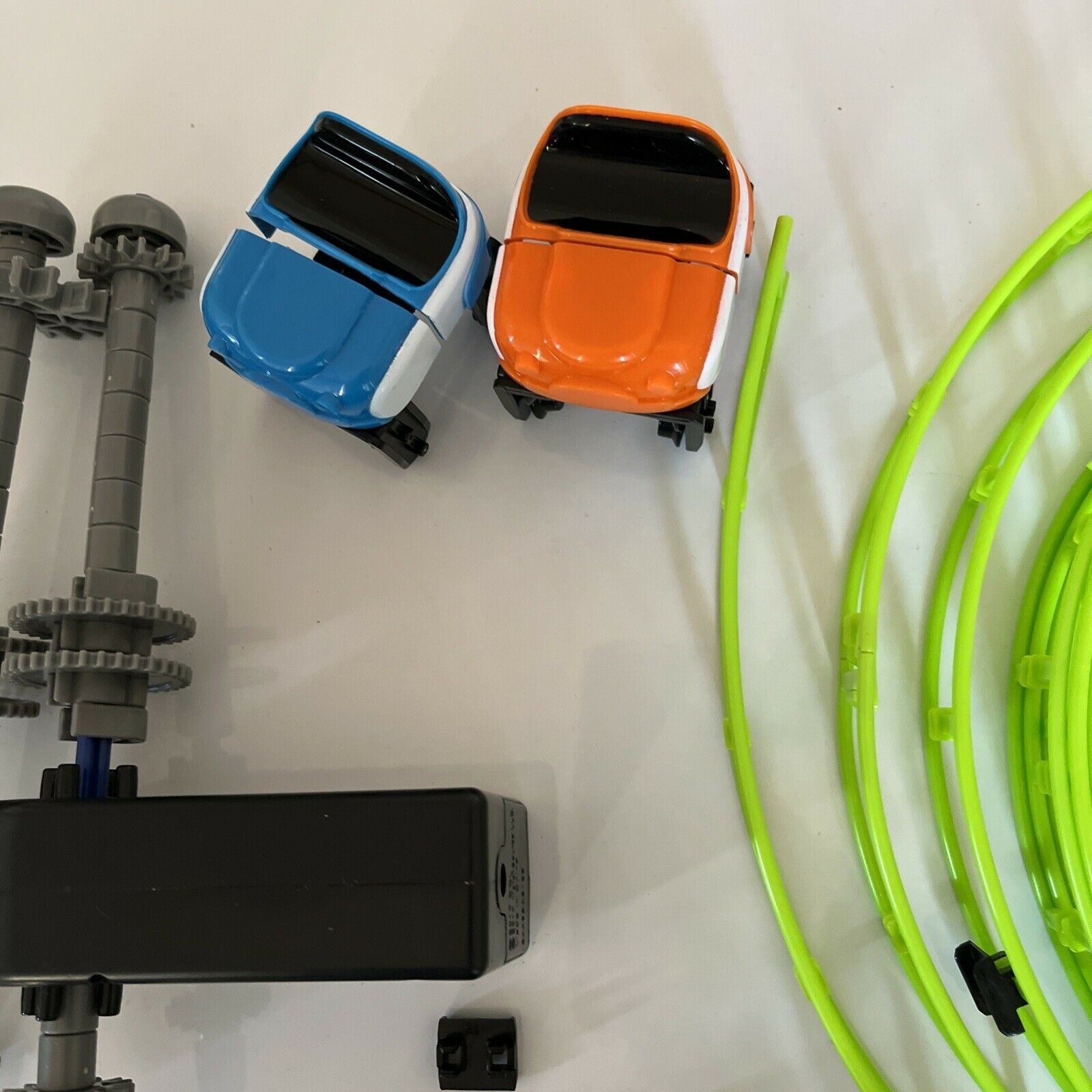 - Uses real motorized parts to propel cars