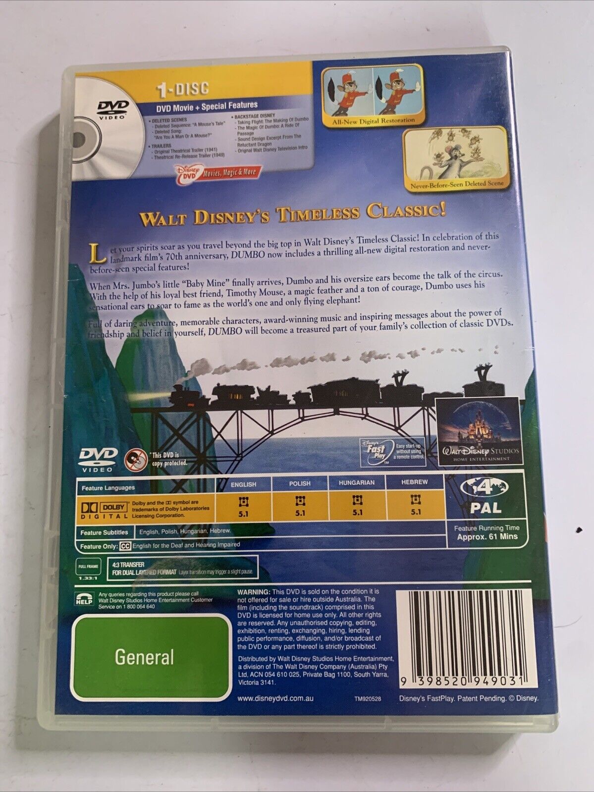 Dumbo Special Edition (DVD, 1941) Disney Animated Film Region 4