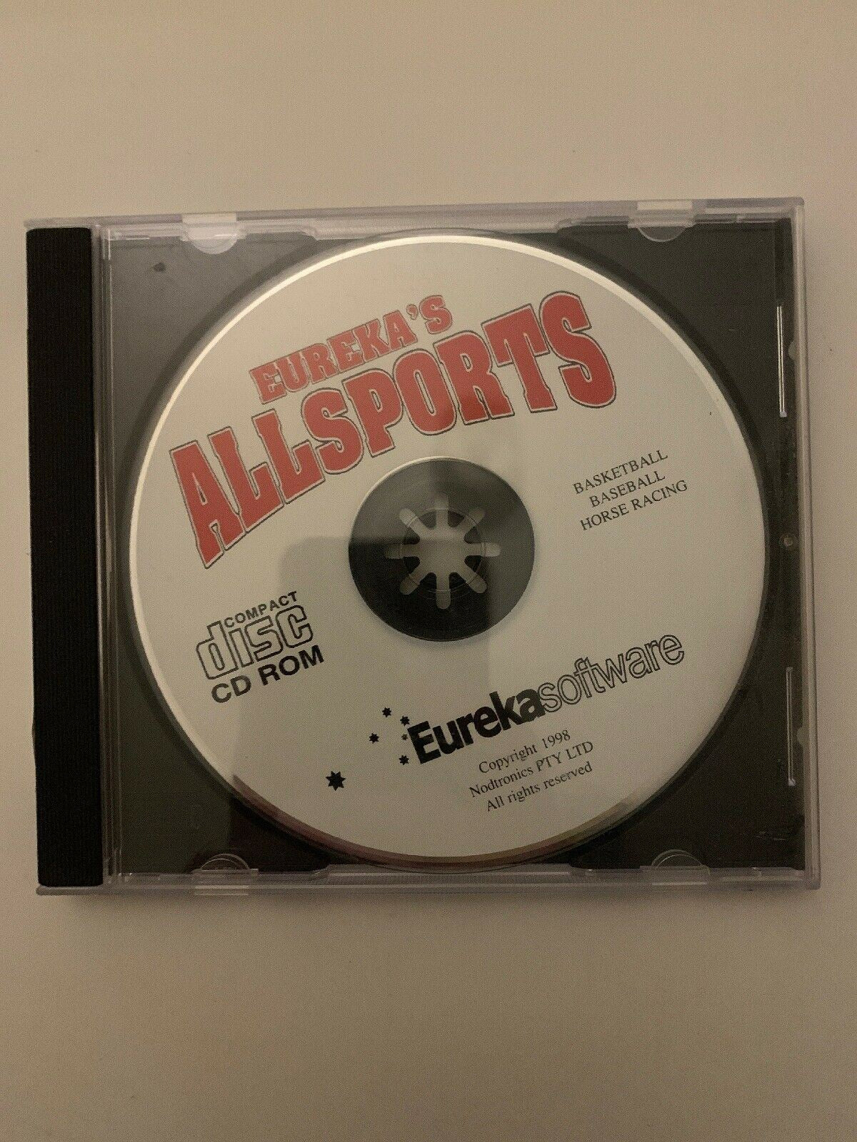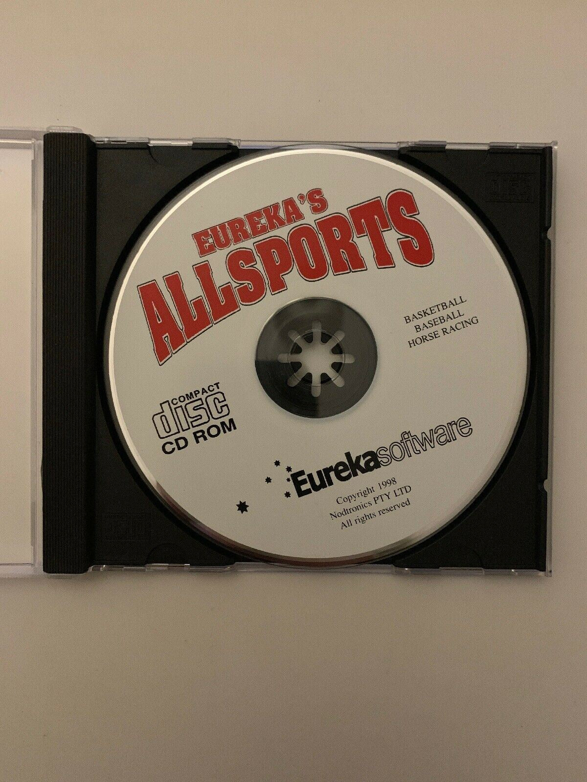 Eureka's AllSports (PC, 1998) - Retro Basketball Baseball Horse Racing Game. Condition is Good. Sent with Australia Post Pre-Paid Parcel Post Satchel 500g.
