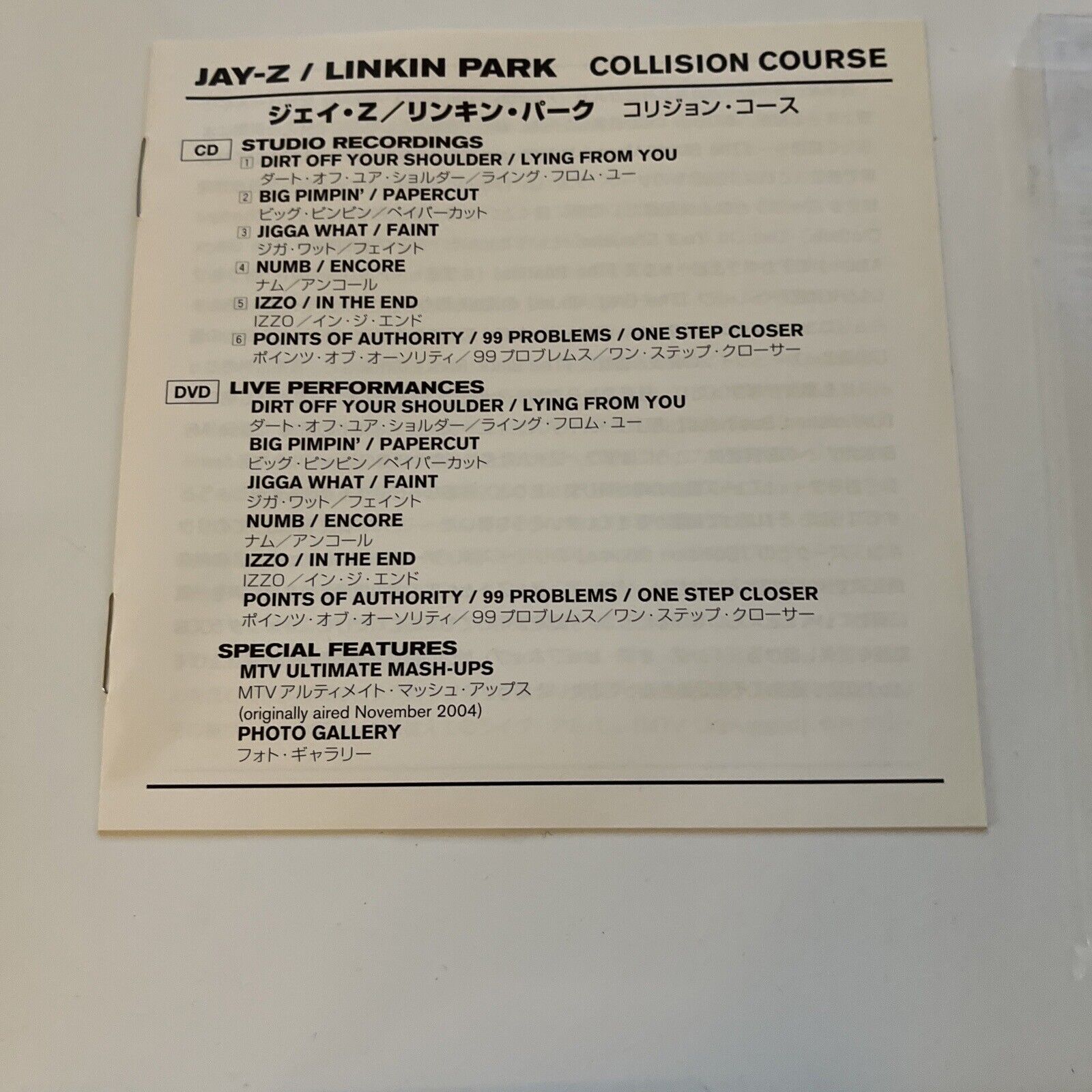 Jay-Z Linkin Park Collision Course (CD + DVD) Obi Japan Region 4 &2.