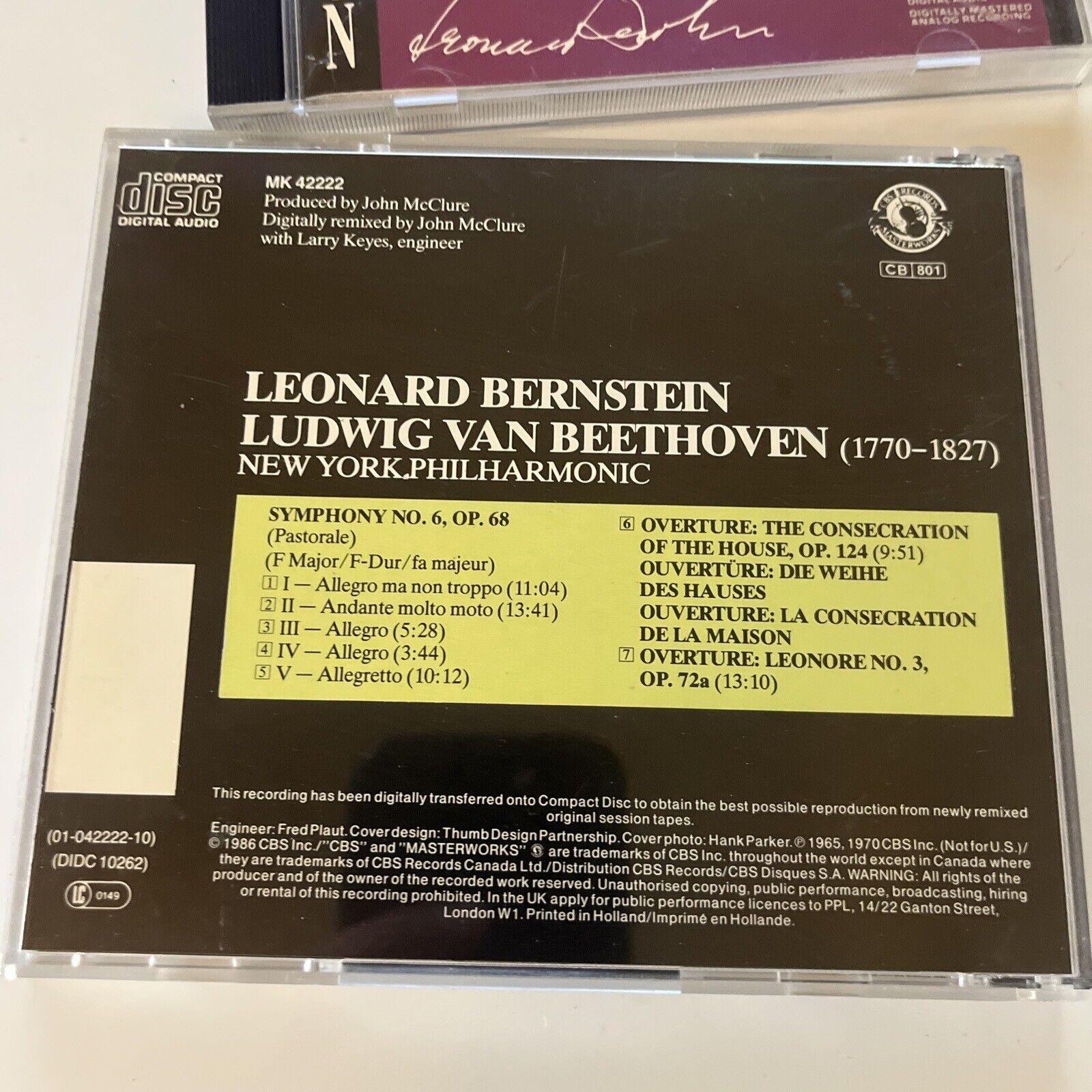 Leonard Bernstein - Ludwig Van Beethoven Symphony No 3 & 6 (CD, 1986) Mk42220