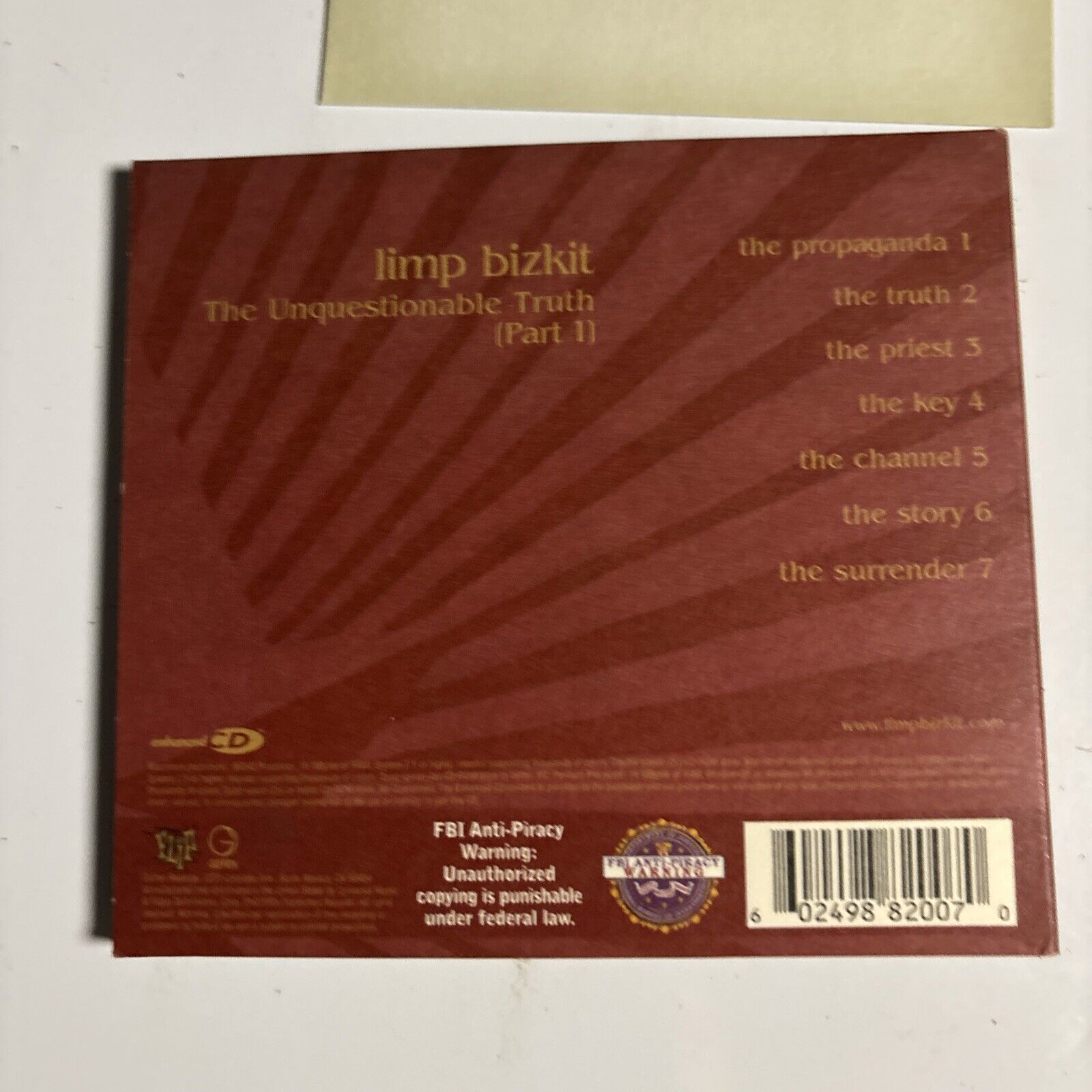 Limp Bizkit – The Unquestionable Truth (Part 1) (CD, 2005) B0004703-12 Digipak