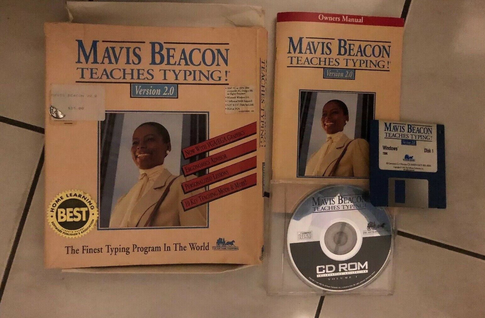 Mavis Beacon Teaches Typing Version 2.0 PC Windows CDROM Diskette Vintage Retro