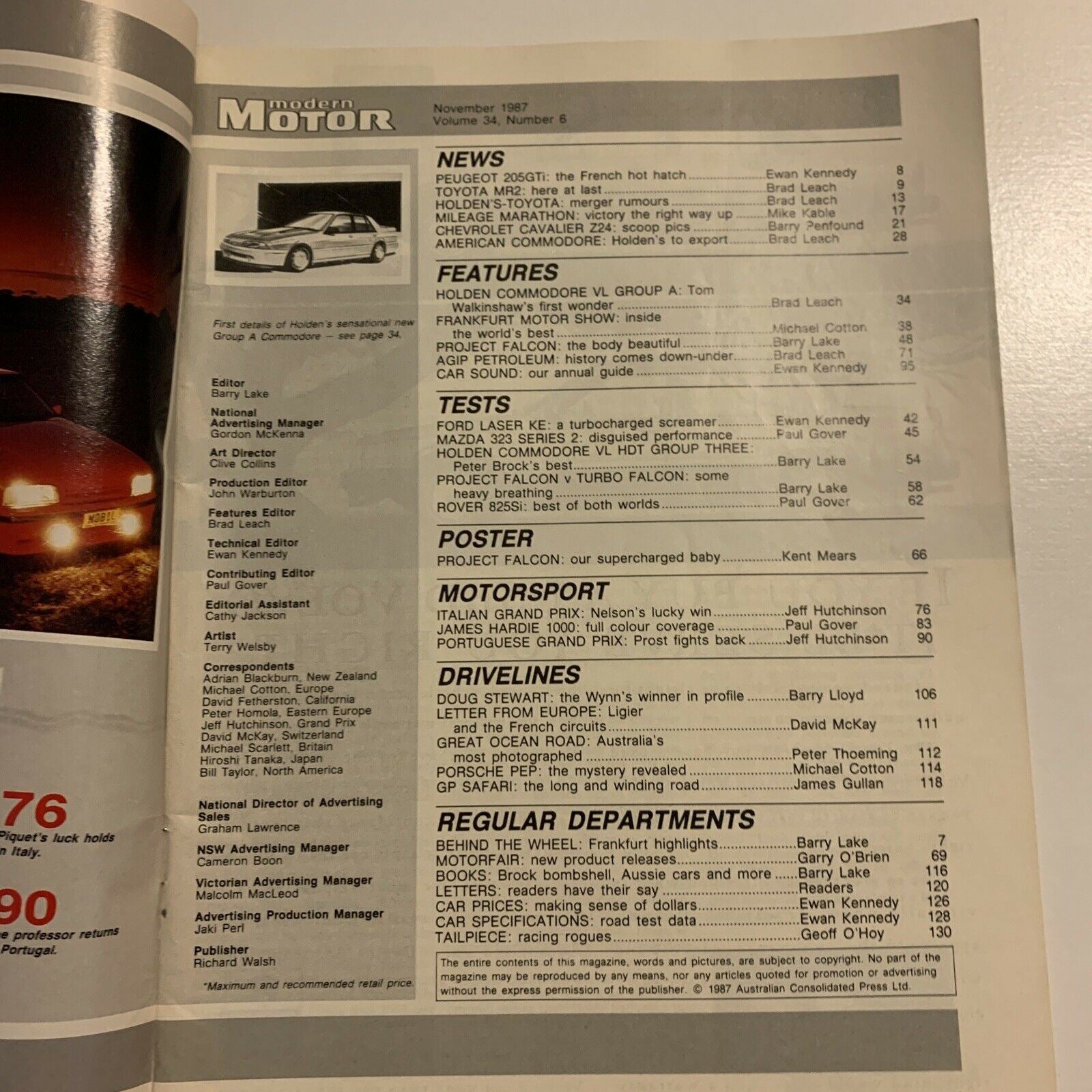 Modern Motor Magazine - November 1987 - TWR Gp A Commodore