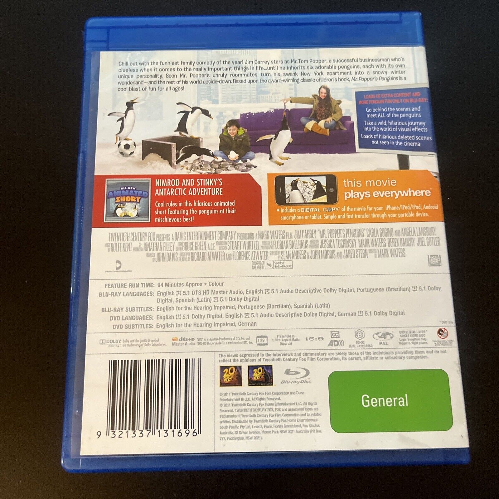 Mr. Popper's Penguins (Blu-ray + DVD, 2011, 2-Disc) Region B & 4.