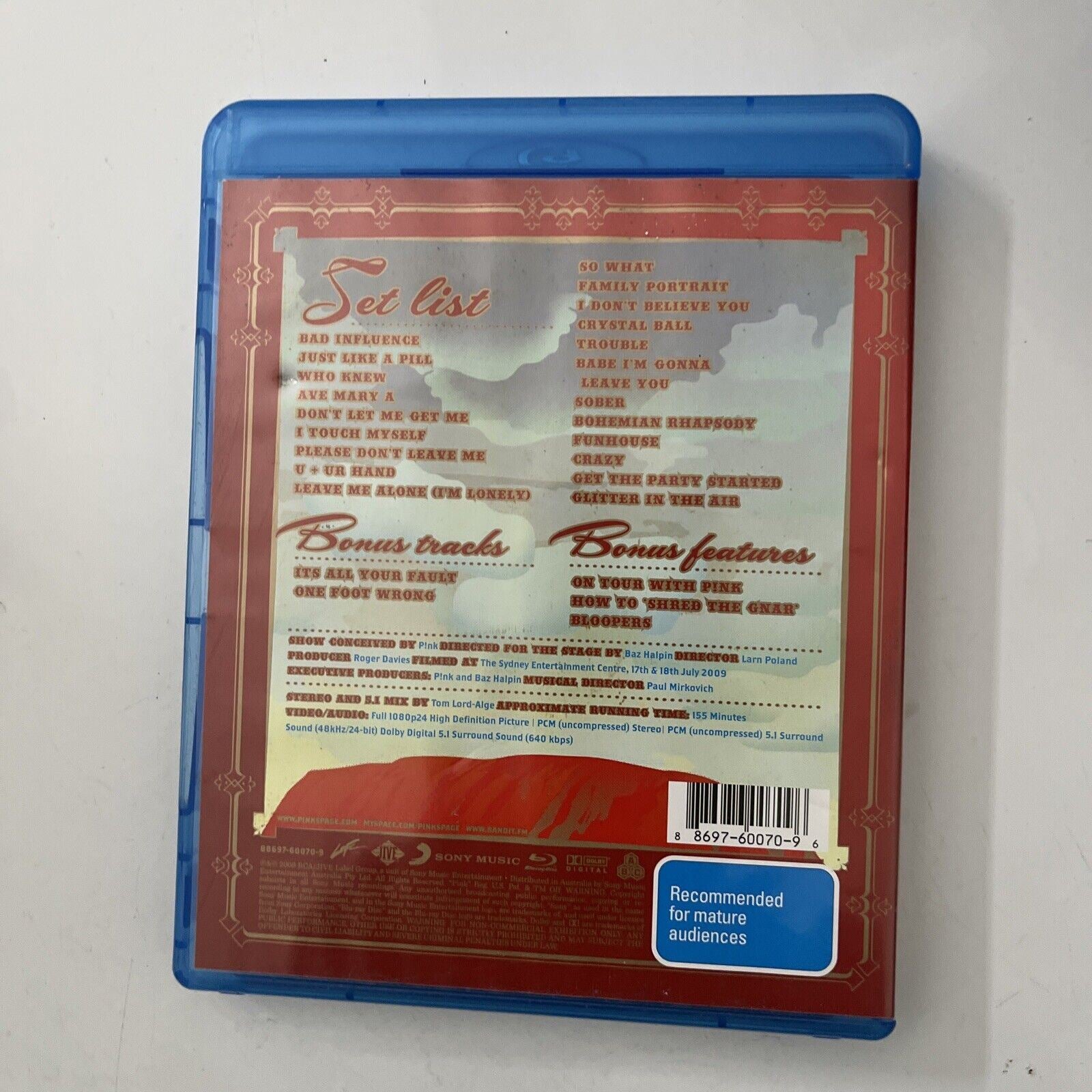 Funhouse Tour: Live in Australia by P!nk (Blu-Ray Disc, 2009) All Regions.
