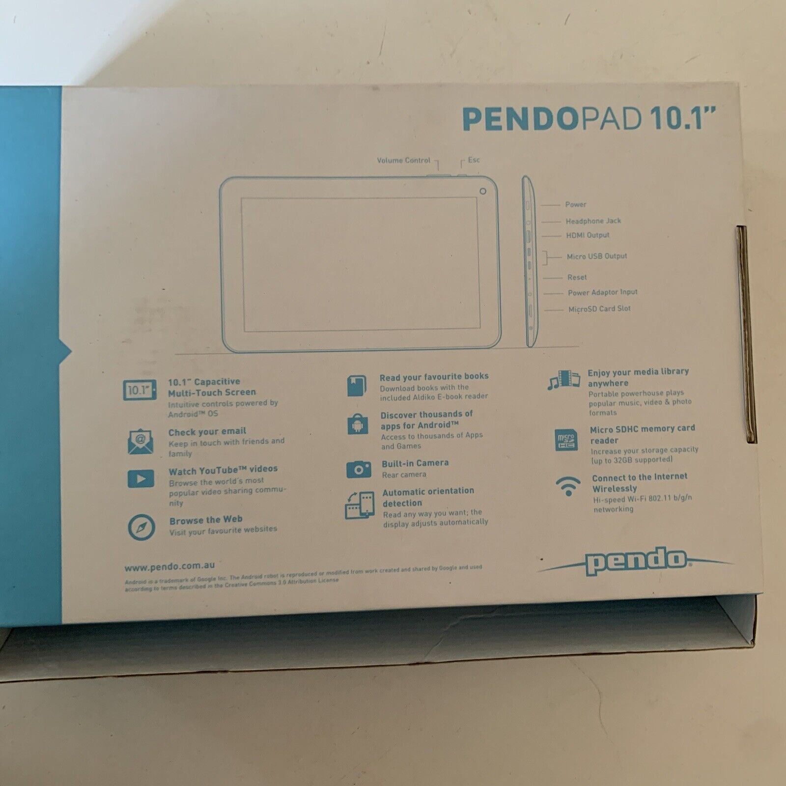 Pendo Pendopad 10.1" Android Tablet 8GB Dual Core Processor Front/Rear Camera