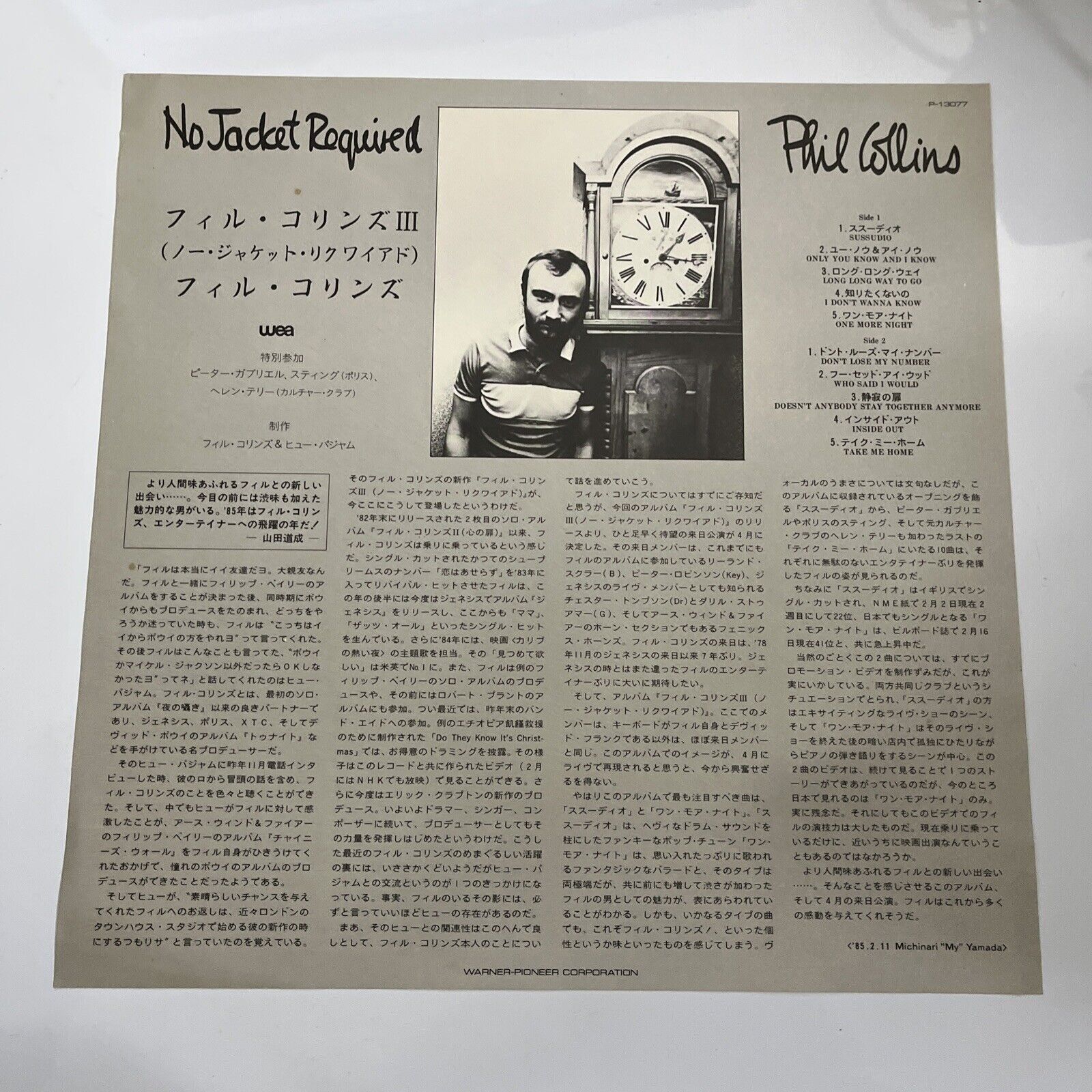 Phil Collins – No Jacket Required 1985 LP Vinyl Record WEA P-13077