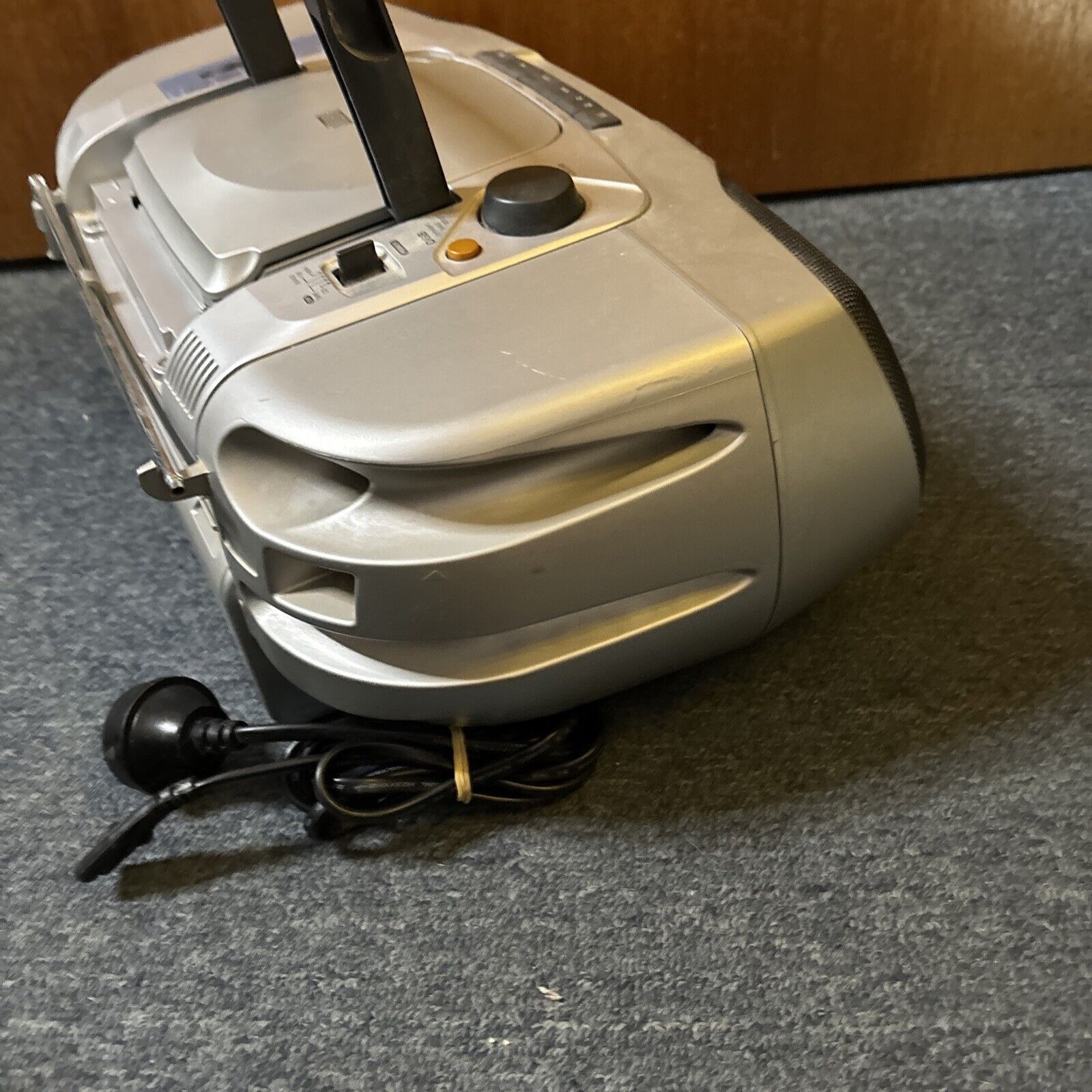CD and Radio works. The cassette player motor doesn't work. Probably requires belt replacement.