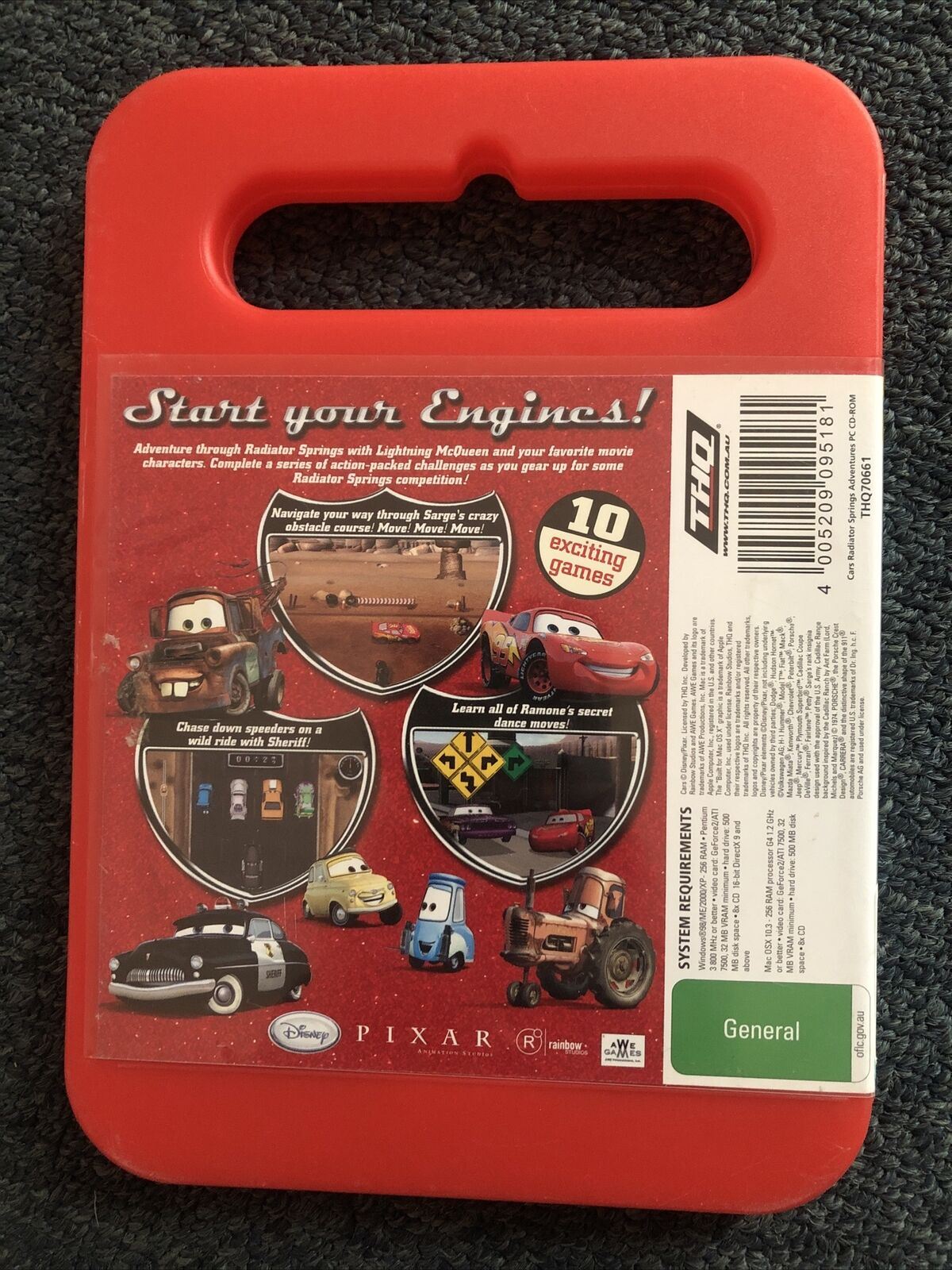 Adventure through Radiator Springs with Lightning McQueen andsome of your favorite movie characters. Complete a series of awesome challenges as you gear up for the big race! "Cars," the seventh animated feature film to be created by Pixar Animation Studios and released by Walt Disney Pictures, is directed by Pixar's two-time Academy Award-winner John Lasseter, who directed "Toy Story," "A Bug's Life," and "Toy Story 2." A high-octane adventure comedy, "Cars" features the voice talents of Owen Wilson, Paul Newman and Bonnie Hunt, and has a wide assortment of cars as characters who get their kicks on Route 66.