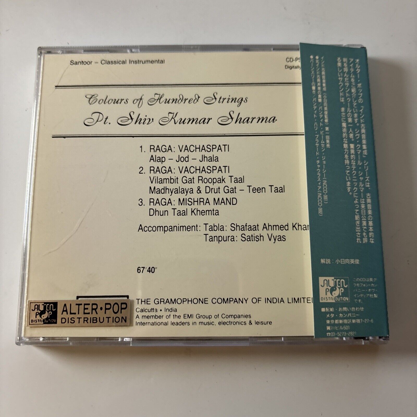 Pt.Shiv Kumar Sharma - Colours Of Hundred Strings (CD, 1989) Cd-pslp-5076 Obi