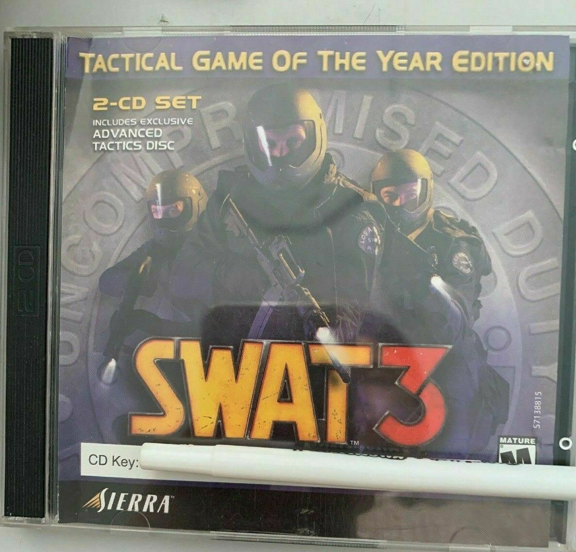 Swat 3 With Advanced Tactics 2001 PC Cdrom 2-cd Set Sierra. Condition is Good. Sent with Australia Post Pre-Paid Parcel Post Satchel 500g.