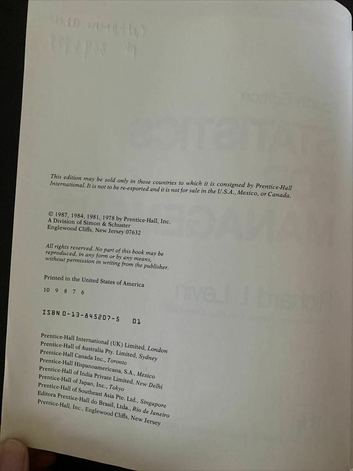 Statistics For Management Fourth Edition. Condition is Good. Sent with Australia Post Standard.
