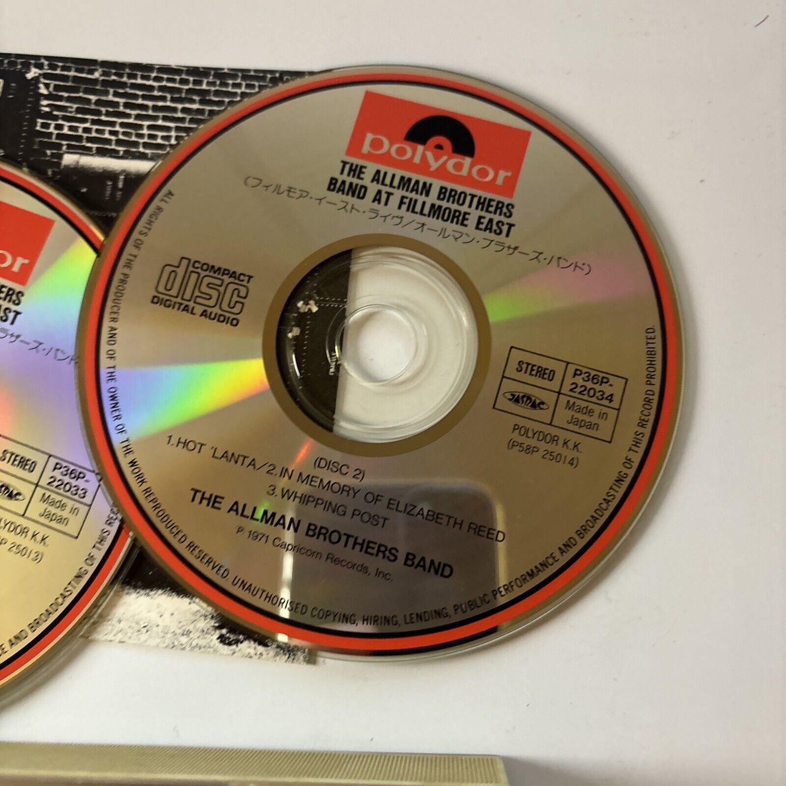 The Allman Brothers Band At Fillmore East (CD, 1989, 2-Disc) Japan P36p-22033/4