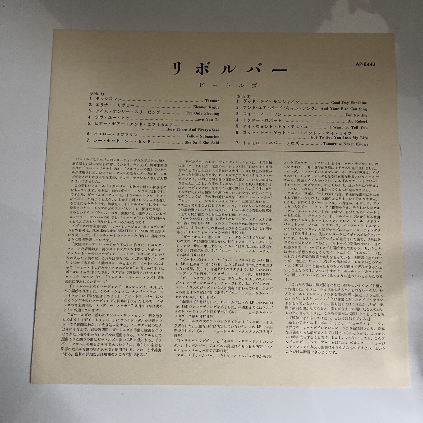 The Beatles – Revolver LP 1974 Vinyl Record Japan Pressing AP-8443